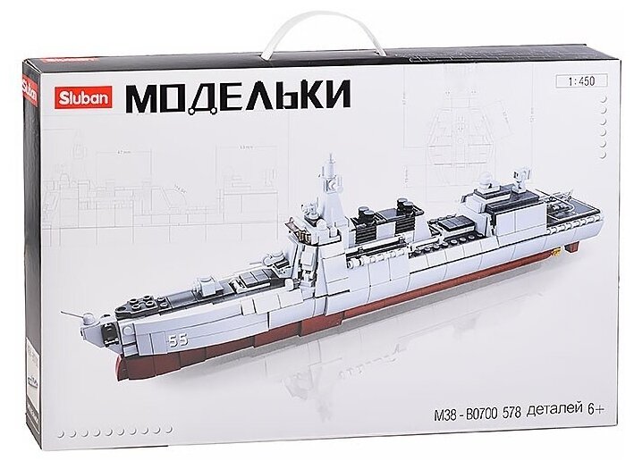 Конструктор SLUBAN Миноносец (578 деталей) в коробке развивает творческое мышление, усидчивость и мелкую моторику. Выполнен из безопасных для здоровья ребенка материалов.