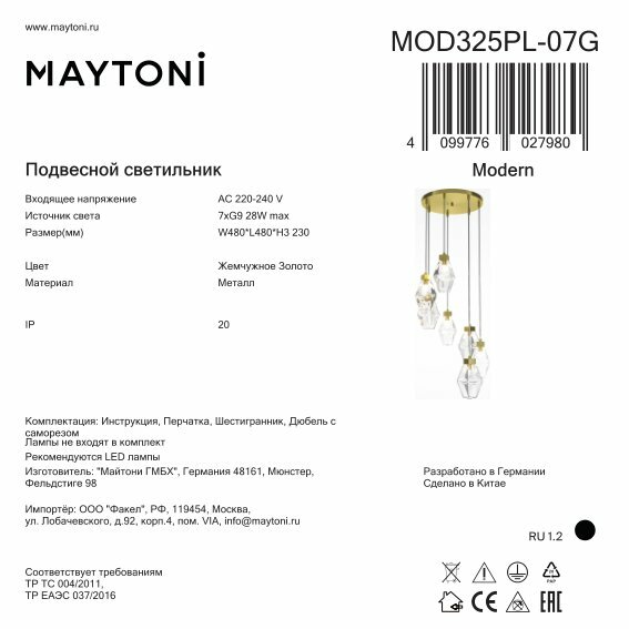 Подвесной светильник Maytoni COCTAIL TIME MOD325PL-07G