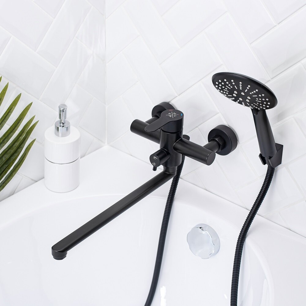 Стильный и лаконичный смеситель для ванны и душа станет надежным и функциональным помощником в вашей ванне. Смеситель покрыт надежной и стойкой краской черного цвета. Обладает длинным поворотным изливом, что увеличивает его функционал.При производстве смесителей ТМ РМС используются только высококачественные материалы. Смесители серии SUS124 выполнены из нержавеющей стали, что является гарантией качества и долговечности, устойчивы к царапинам, экологичны и безопасны для вашего здоровья. Поверхность не потеряет со временем свой роскошный вид, а уход за ней сводится к протиранию мягкой салфеткой. Установка смесителя крайне проста. Смесители РМС это сертифицированный продукт с 7-летней гарантиейКартридж: керамический 35мм. Евро-переключение на душ. Поворотный прямой излив.Материал корпуса: нержавеющая сталь. В комплекте: эксцентрики, отражатели, металлический шланг для душа 1,5м, лейка для душа.