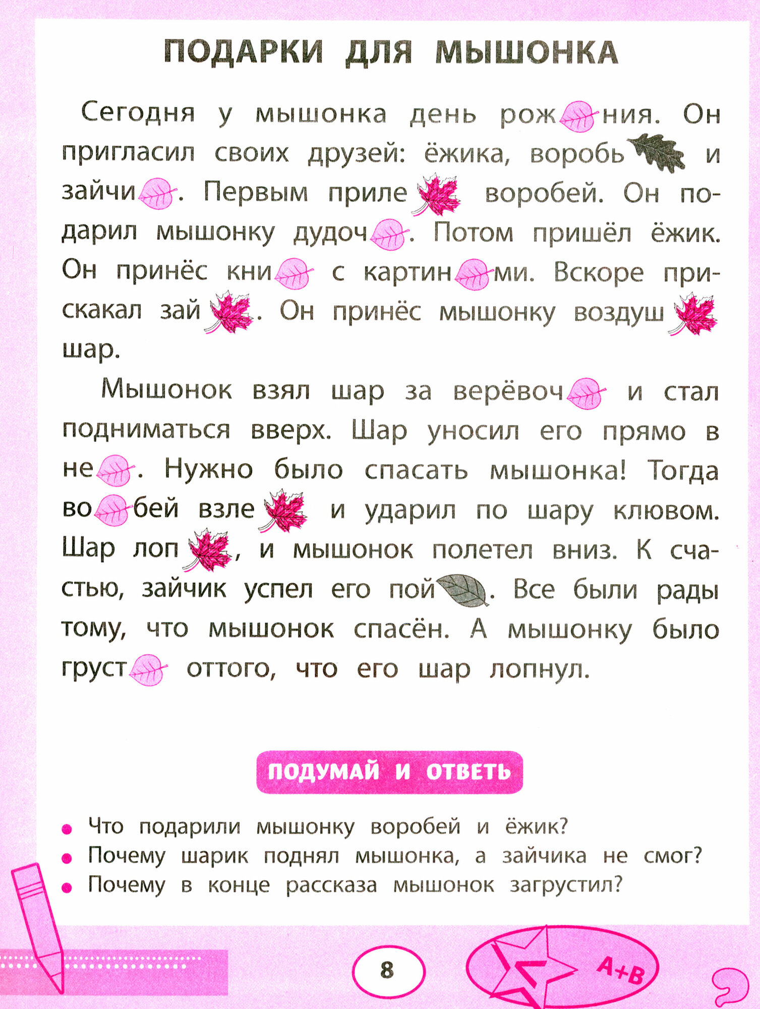 Вы держите в руках сборник занимательных уроков чтения. Особенность нашей книги в том, что некоторые слоги закрыты рисунками листьев. Такая методика поможет вашим малышам научиться читать и пересказывать текст, развить речь, составлять из слогов слова, логически и творчески мыслить.
