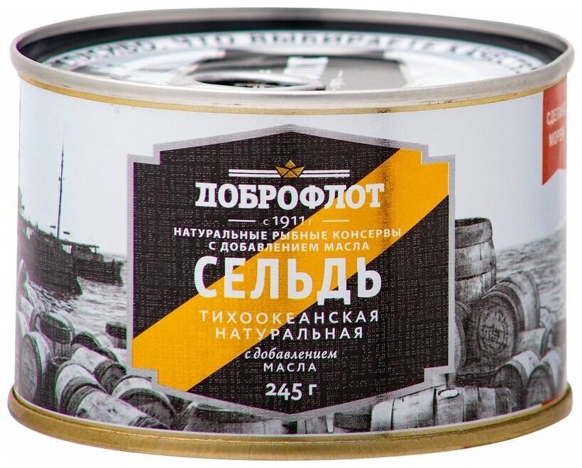 Доброфлот Сельдь тихоокеанская натуральная 245 г Сельдь Доброфлот натуральная тихоокеанская