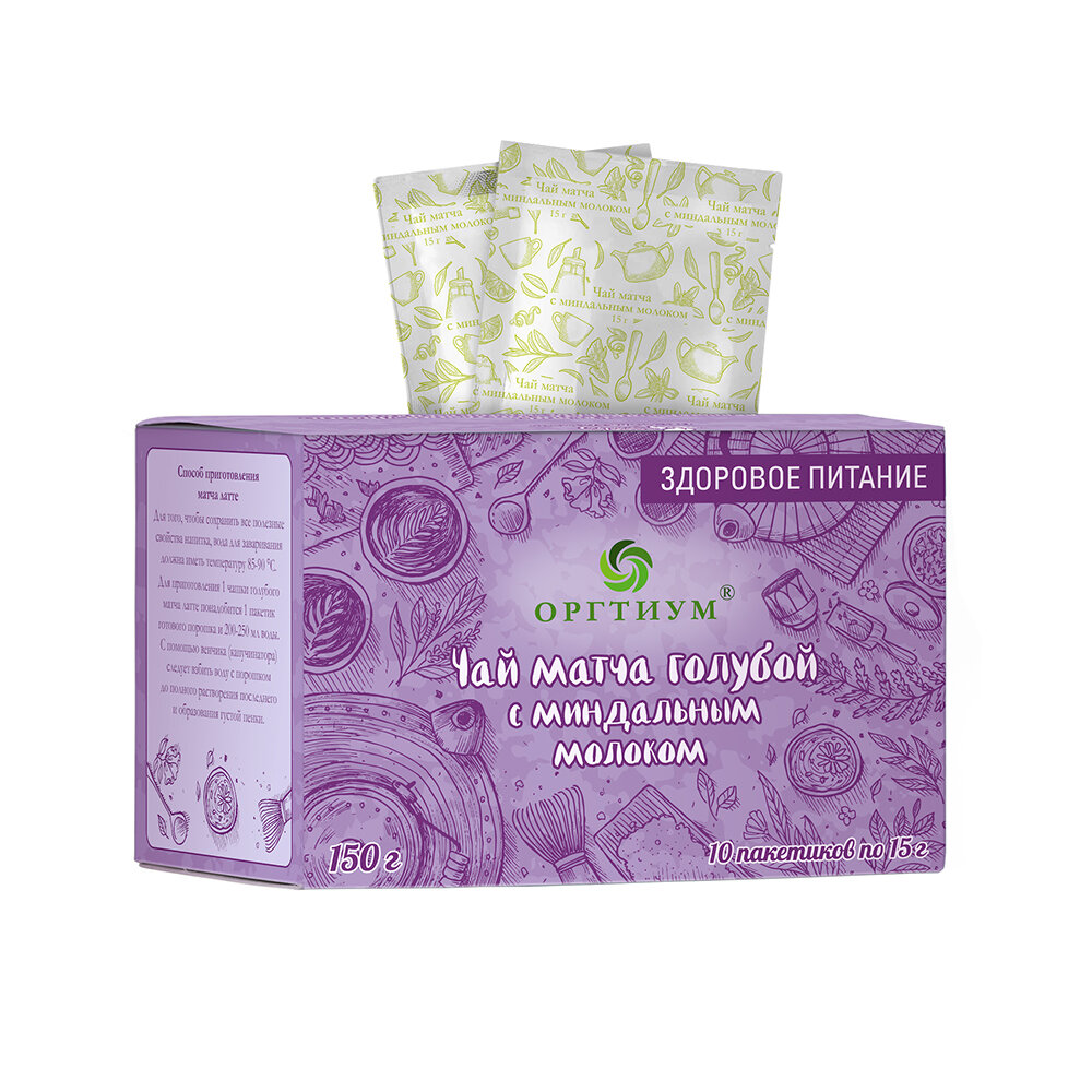 Голубой чай Матча Латте с миндальным молоком 150г (10 пакетов по 15 г) Оргтиум