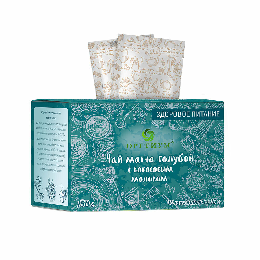 Чай голубой Оргтиум Матча Латте с кокосовым молоком кокос натуральный 170 г 10 пак.