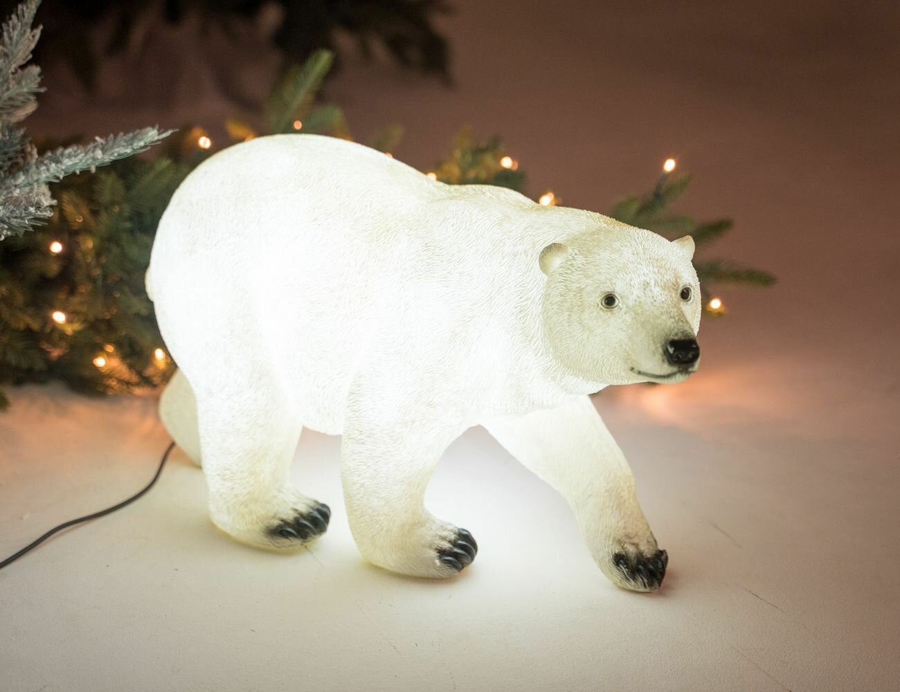 Невероятно обаятельный белый мишка хоть и пришёл к вам из холодных северных далей, но принёс с собой вовсе не стужу, а самые согревающие ощущения! И немудрено, ведь изнутри его подсвечивают 8 огоньков, а на его симпатичной морде сияет даже не тёплая, а наитеплейшая улыбка, ведь он так радуется жизни, праздничной зимней поре и вашей чудесной компании! Готов стать душевным украшением и для дома, и для сада - будет радовать именно там, где вам нужна волшебная светящаяся фигура! Характеристики: Размер (ДхВхШ) - 54х31х21 см. Материал - стекловолокно. 8 холодных белых LED-огней. Подводящий провод - 5 м. Напряжение - 220/12 V (адаптер в комплекте) Изделие полностью гидроизолировано IP 44, может быть использовано как внутри, так и вне помещений. Производитель KAEMINGK (серия Lumineo), Голландия. Производство размещено в Китае.