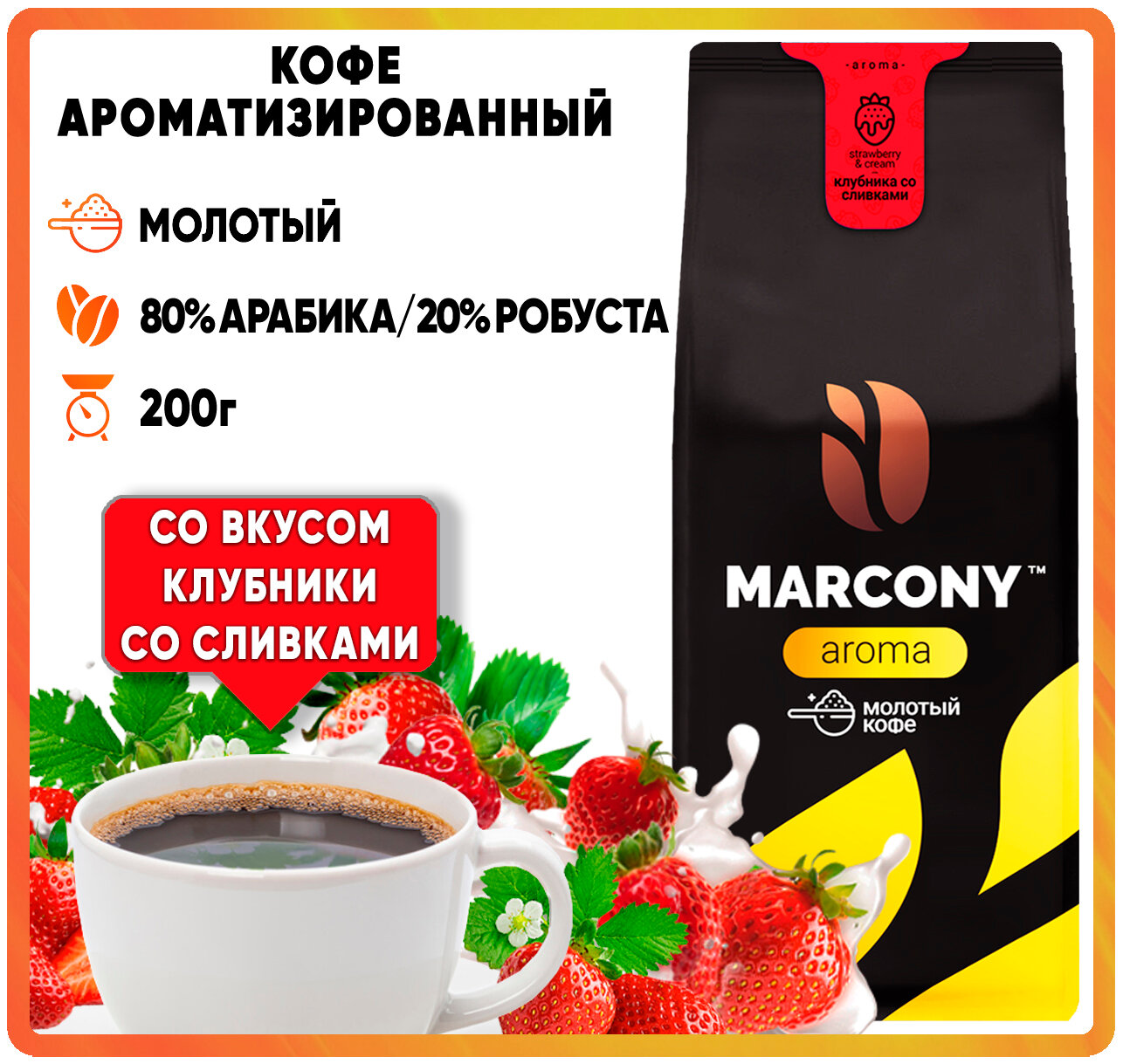 Кофе молотый Marcony AROMA Клубника со сливками