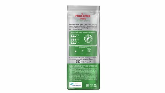 На сегодняшний день товар «Кофе молотый MacCoffee PURE Arabica Crema жареный натуральный 250 г (Италия) Арабика Крема» можно купить с кешбеком в 1 магазине: Яндекс.Маркет