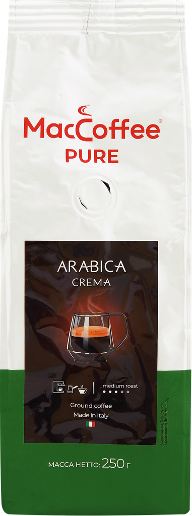 Кофе молотый MacCoffee PURE Arabica Crema жареный натуральный 250 г (Италия) Арабика Крема