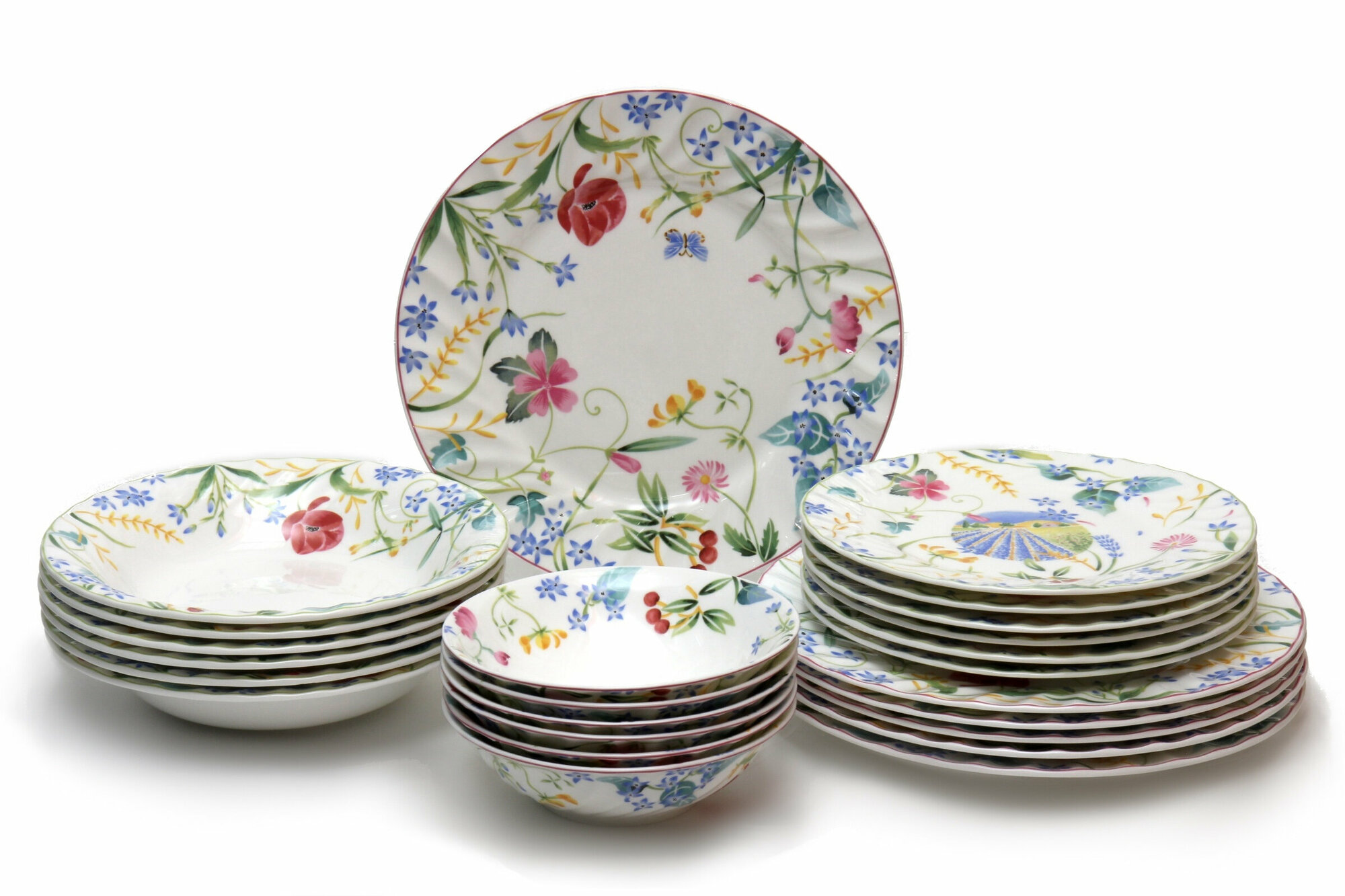 | Состав набора | Тарелка 27 см – 6 шт, суповая тарелка 23 см – 6 шт, тарелка 21 см – 6 шт, салатник 15 см – 6 шт. |