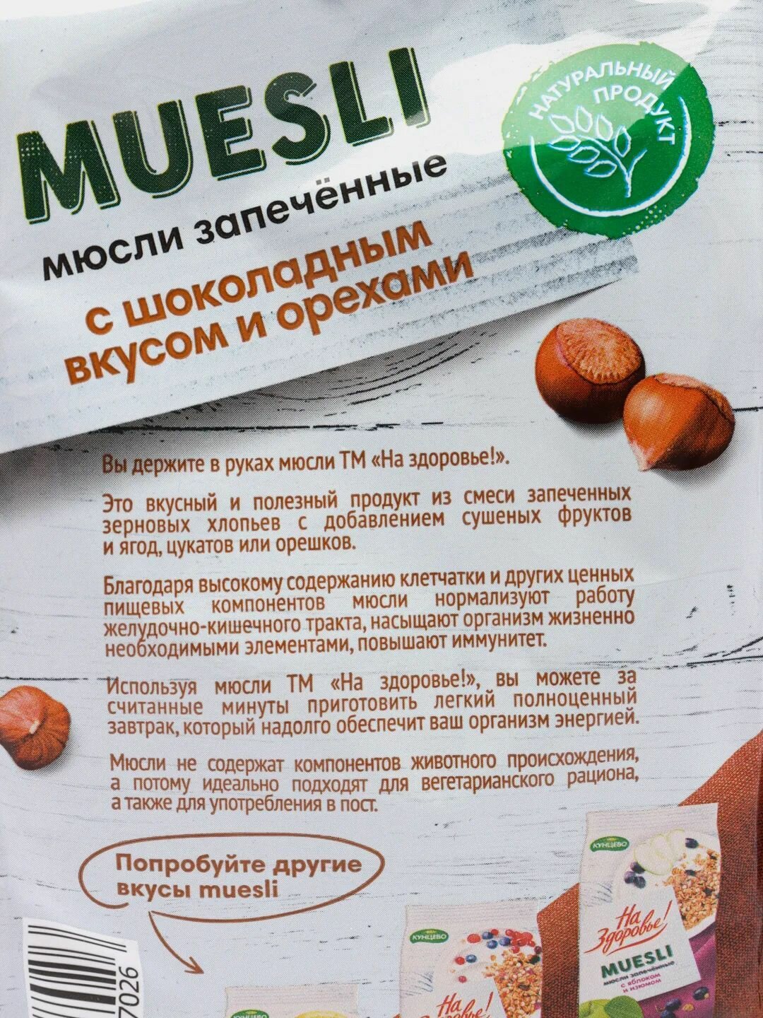 Мюсли Запеченные с Шоколадным вкусом и Орехами 300г*4шт На Здоровье