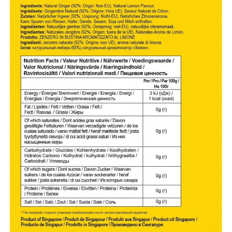 | Состав | Натуральный имбирь (92%), натуральный ароматизатор "Лимон". |