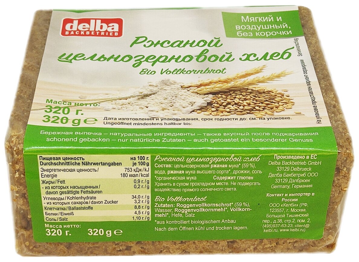 Ржаной цельнозерновой хлеб Delba 320 грамм