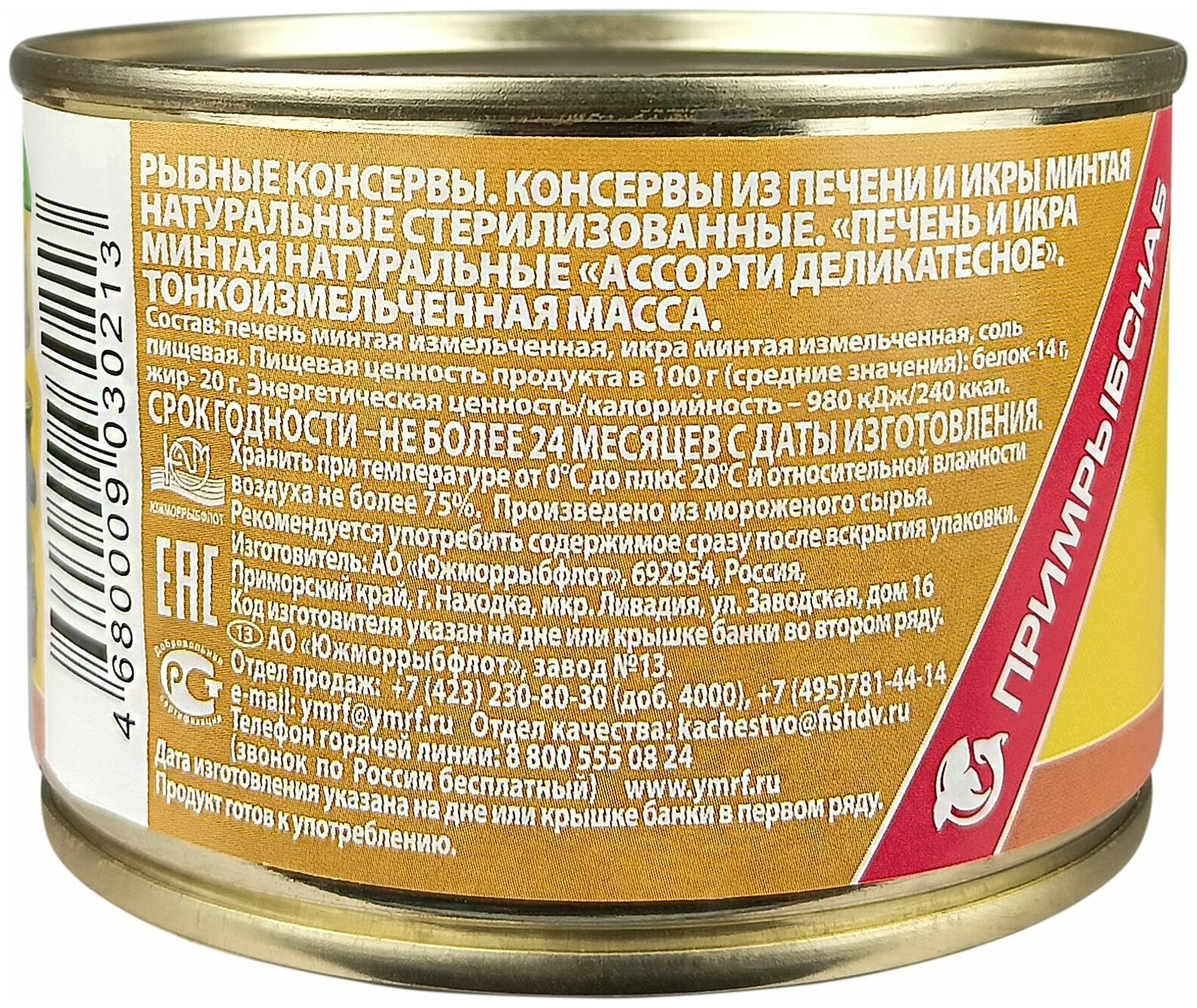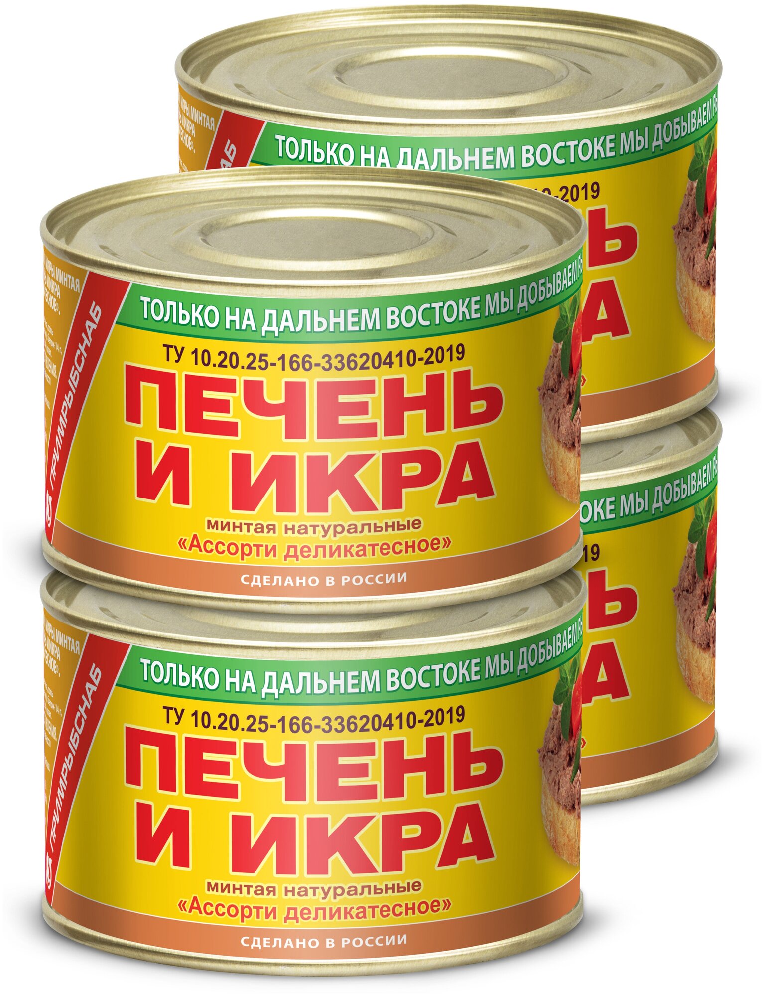 Южморрыбфлот печень и икра минтая натуральные Ассорти деликатесное 240 г Примрыбснаб