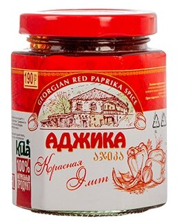 Аджика представляет собой ароматную и острую приправу в виде пастообразной массы, которая является традиционным восточным блюдом. Сегодня эта паста стала любимой приправой для людей, которые любят острый и жгучий аромат красного перца, чеснока, некоторых пряных трав. Пряные травы и специи при смешивании образуют незабываемо прекрасный ароматический букет и имеют острый, пикантный вкус, который многим по нраву. Периодическое употребление аджики укрепляет иммунитет и позволяет проводить профилактику респираторных заболеваний. Жгучесть и острота ингредиентов приправы усиливает активность организма, увеличивает потенцию и улучшает защитные функции Не содержит консервантов, красителей, эмульгаторов и других искусственных добавок. Содержит натуральные специи и пряности.