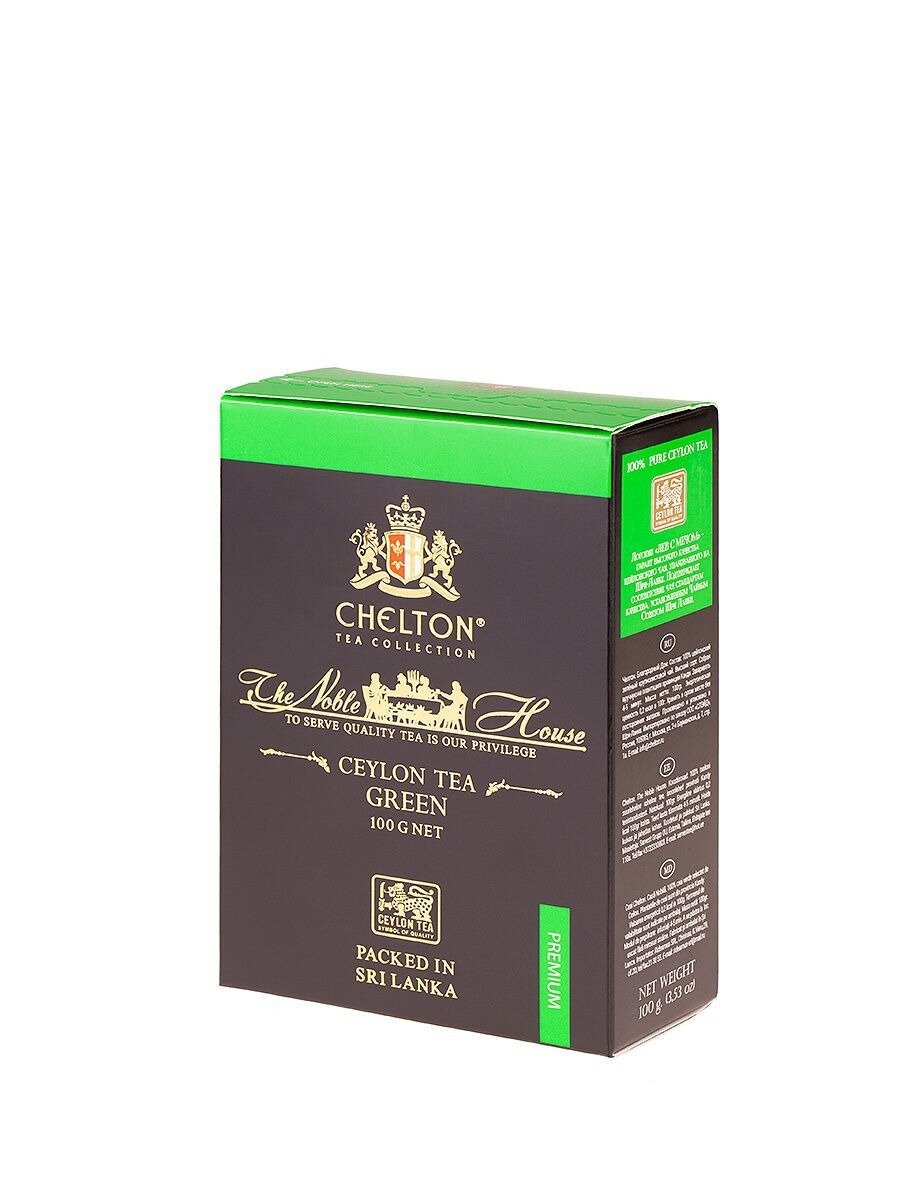 Чай зеленый листовой Chelton "Благородный дом" 200 г в картонной упаковке. Зеленый крупнолистовой чай высшего сорта, собран вручную на плантациях провинции Kandy. Цейлонский чай отличается от других сортов чая своим насыщенным, крепким, приятным и сладковатым мягким вкусом. Логотип «Лев с мечом» на упаковке означает, что внутри 100% цейлонский чай, который был упакован на Шри-Ланке. Чай Chelton имеет полностью натуральный состав, не содержит искусственных добавок и имеет строгие стандарты отбора каждого чайного листочка, чтобы вы могли по достоинству оценить невероятный вкус напитка. Зеленый рассыпной чай богат антиоксидантами, укрепляет иммунитет и просто поднимет настроение даже в самый хмурый день. Насладитесь чашечкой свежезаваренного зеленого чая в послеобеденное время, не забудьте любимый десерт и погрузитесь в мир гармонии и удовольствия с каждым глотком.