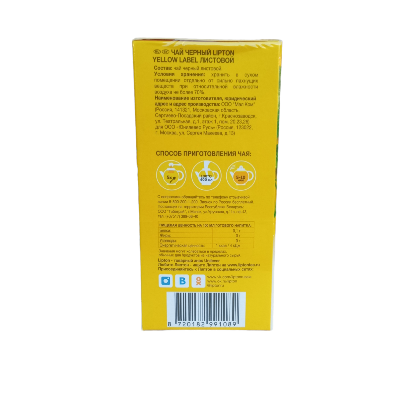Lipton Yellow Label — высококачественный чёрный чай из самых нежных чайных листочков и их выжимки с использованием уникальной технологии производства. Благодаря особенностям сбора, сушки, фасовки, транспортировки, тщательному контролю над качеством и непрерывному совершенствованию чай Липтон завоевал сердца ценителей этого напитка во всем мире. Насыщенный чёрный листовой чай — непременный атрибут доброго утра, а также приятного обеда и тёплых вечеров. Сложно представить свои будни без чашки тонизирующего напитка. И не важно, чем наполнен день — домашними хлопотами или трудными отчётами, — крепкий, горячий чай согреет, взбодрит, утолит жажду и поднимет настроение.Сделайте чаепитие своей маленькой семейной традицией. Когда все домашние собираются на уютной кухне за большим столом и никуда не торопятся. Гостеприимные хозяева всегда готовы предложить горячий вкусный чай и поддержать интересную беседу. Пусть ваша домашняя чайная церемония проходит в душевной атмосфере спокойствия и умиротворения. Листовой индийский чай подарит вам истинное эстетическое наслаждение. Рассыпной черный чай считается одним из мощнейших антиоксидантов, он обладает неповторимым ароматом и нежным вкусом. Дайте напитку настояться и листовой цейлонский чай раскрывается в полной мере, даря свой изысканный вкус. Позвольте чайному напитку остыть до оптимальной температуры, чтобы не обжечься, а полностью прочувствовать тонкие вкусовые нотки. Заварка для чая в герметичной упаковке надежно сохраняет аромат и вкусовые свойства, защищает от попадания влаги, чтобы заварной чай не отсырел. Листовой чай заваривается особым образом, это необычный процесс, не торопите его, а когда напиток настоится вы испытаете истинное удовольствие от глубокого насыщенного вкуса, который подарит вам бодрящий черный чай. В зависимости от пропорций заваривания рассыпной чай можно сделать желаемой крепости, просто регулируя граммовку на порцию или в заварочный чайник френчпресс. Готовый чайный напиток можно взять с собой в термос в поход или в поездку, свежеприготовленный бодрящий черный чай придется очень кстати во время остановки. Горячий и ароматный черный листовой чай для заваривания взбодрит и согреет в прохладную погоду. В летние жаркие дни холодный чай отлично утоляет жажду, при этом не теряя свои полезные свойства. Натуральный листовой чай обязательно оценят истинные ценители, ведь в нем собрана целая композиция изысканных вкусов и ароматов. Вечером после долгого и тяжелого дня побудьте наедине с собой выпейте успокаивающий чай, он поможет справиться со стрессами, и неврозами, а также эффективно устраняет головные боли. Если вы ищете действительно полезный подарок, рассыпной элитный листовой чай станет отличным вариантом презента для коллеги, учителя или воспитателя. Для уютных чаепитий в кругу семьи или в офисе мы приготовили для вас компактный формат черный чай листовой 180 граммов. Наслаждайтесь невероятными вкусовыми сочетаниями, приятного чаепития!