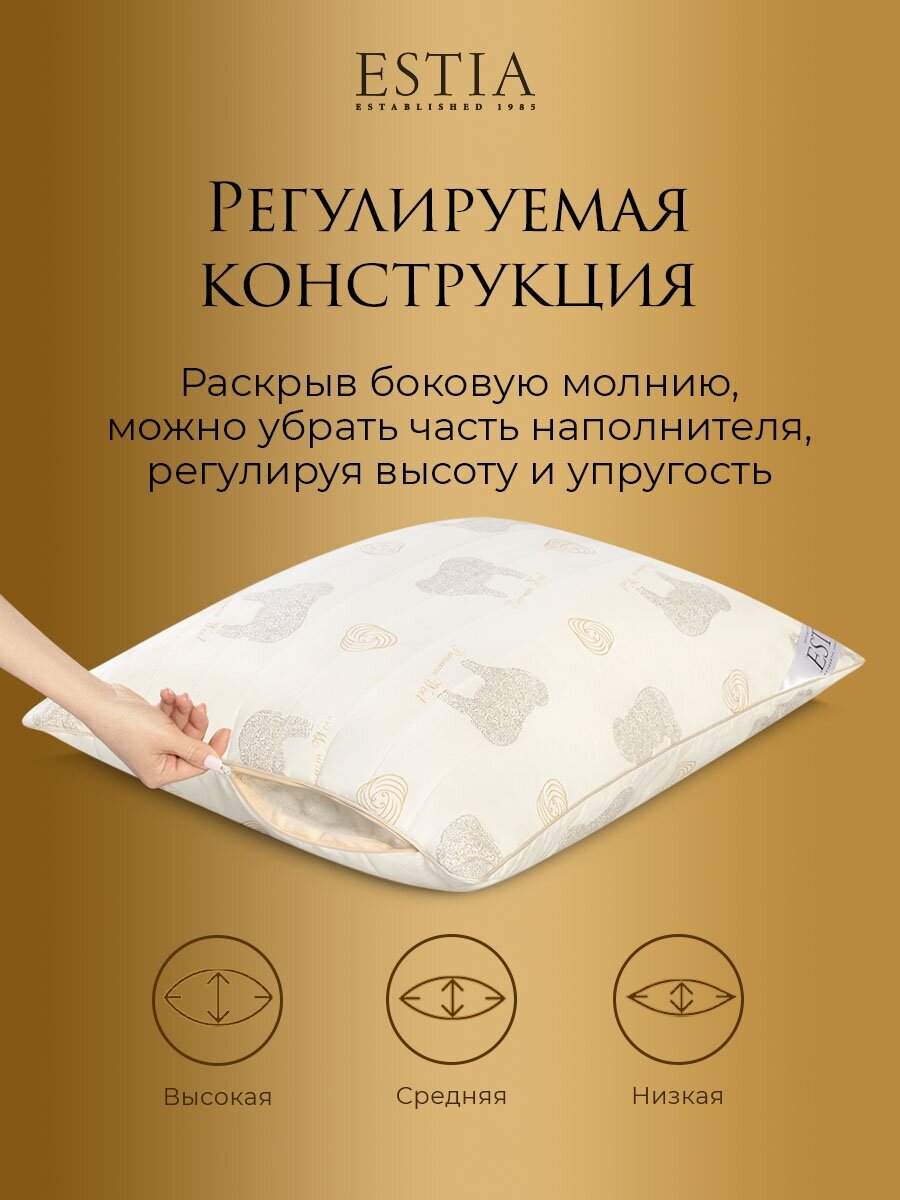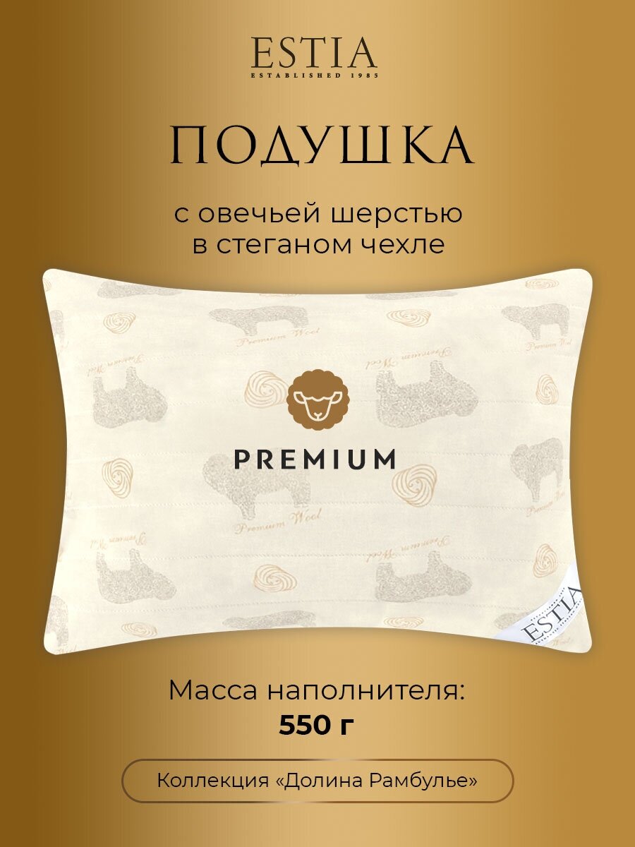 Подушка 70х70 для сна анатомическая овечья шерсть ESTIA Долина Рамбулье