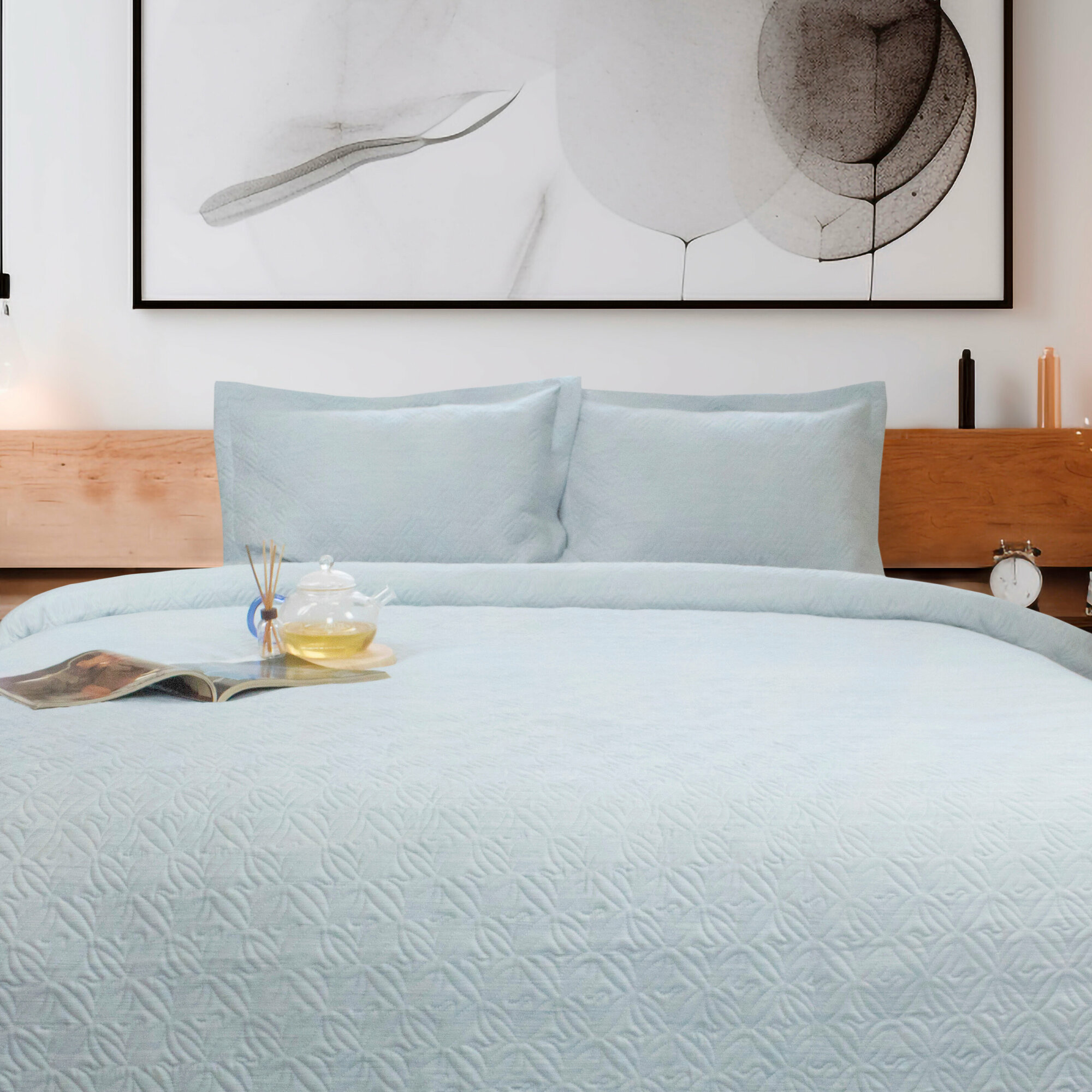 Покрывало Торговой Марки CLEO коллекции "MUSCAT" - удивительная мягкость, износостойкость и прочность. Эта коллекция покрывал выполнена из бархатистого материала в приглушенных пастельных тонах с повторяющимся узором из стежки, наполнитель - синтепон. В комплект входит две наволочки 50*70 с французским кантом. Изделие станет неотъемлемой частью стильного интерьера. Мы рекомендуем остановить на нем свой выбор. Коллекция "MUSCAT" хорошее решение для подарка.