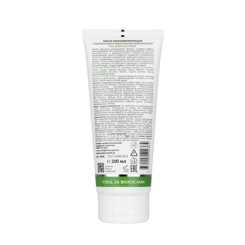 Маска биоламинирующая с коллагеном и комплексом аминокислот Collagen Silk Mask 200 мл Aravia Laboratories (ЭХ99989435399)