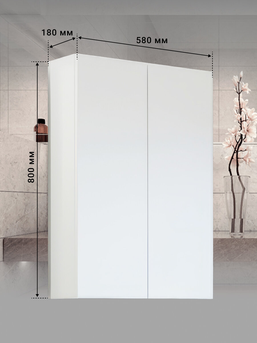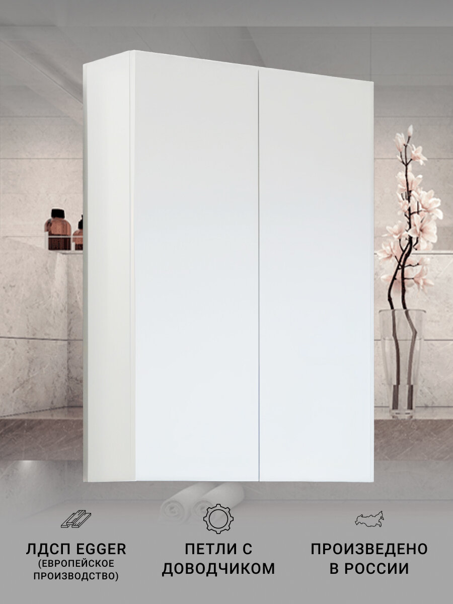 Характеристики: Цвет корпуса: белый глянец. Материал: ВЛДСП, МДФ. Монтаж: подвесной. В комплекте поставки: подвесной шкаф, комплект креплений