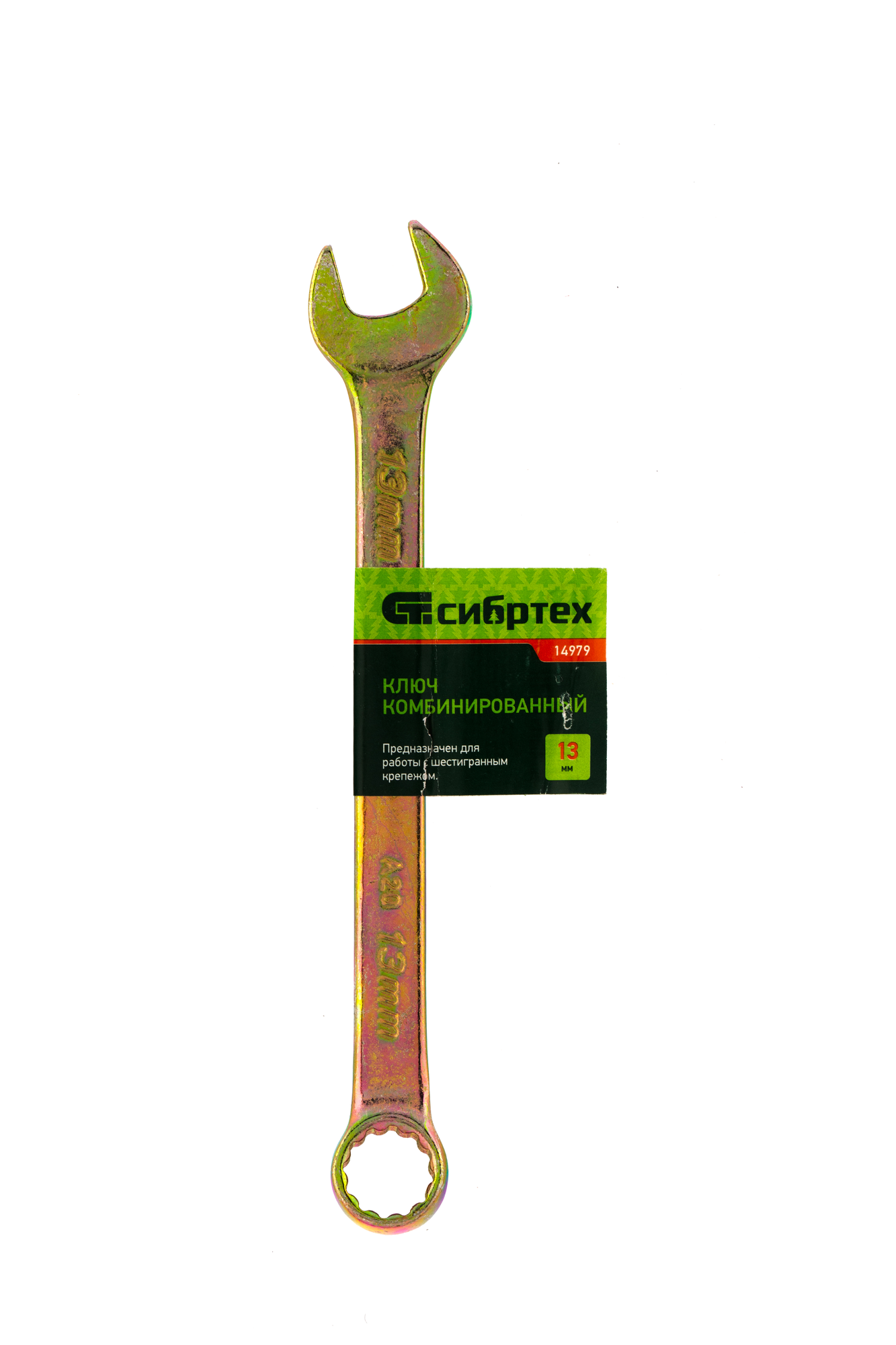 **Ключ комбинированный Сибртех** предназначен для слесарных и монтажных работ с резьбовыми соединениями. В конструкции предусмотрены рожковый и кольцевой зев, что делает ее универсальной в применении. Двенадцатигранник накидного типа надежно удерживает метиз, снижая риск его деформации. Ключ подходит для решения профессиональных и бытовых задач.