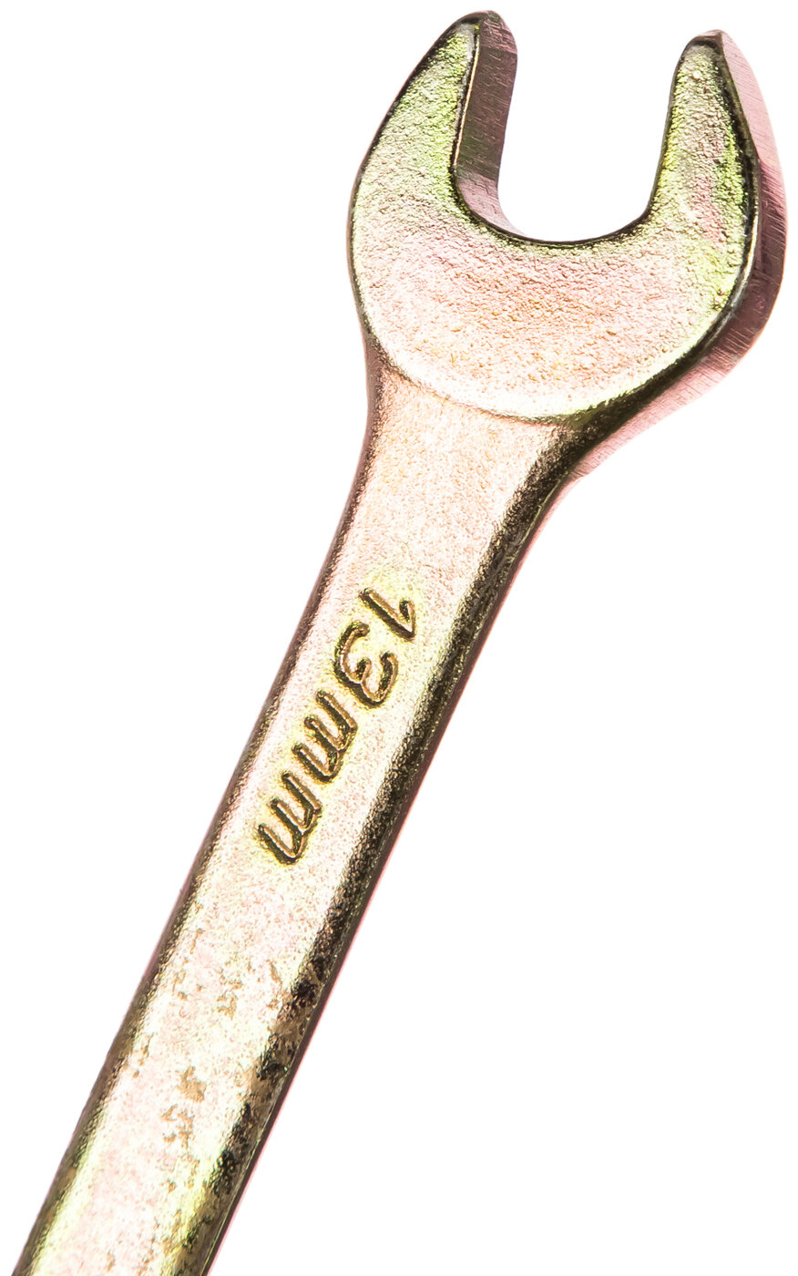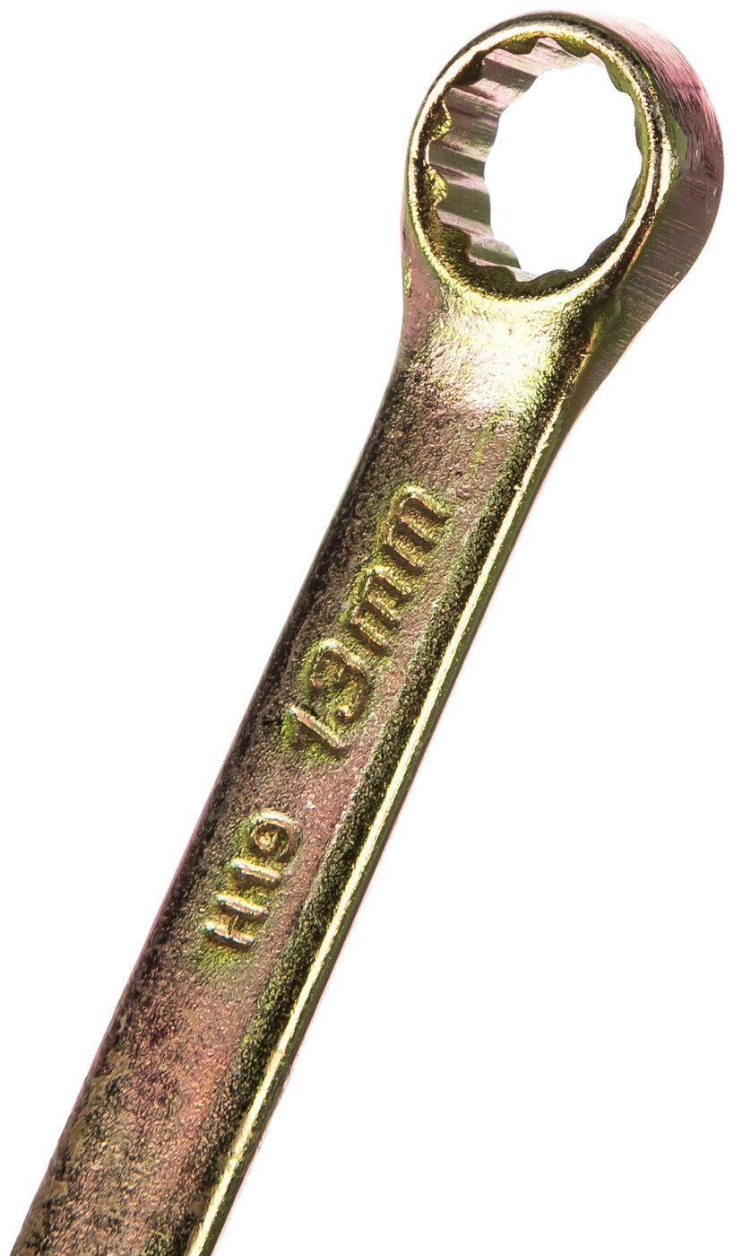 | Прочие особенности и свойства | Профиль кольцевого зева имеет 12 граней, что увеличивает площадь соприкосновения рабочих поверхностей и снижает риск деформации граней крепежа при монтаже., Угол наклона кольцевого зева относительно плоскости ключа в 15 градусов делает монтаж более удобным., Ключ гаечный комбинированный с открытым и кольцевым зевом предназначен для монтажа (демонтажа) резьбовых соединений. |