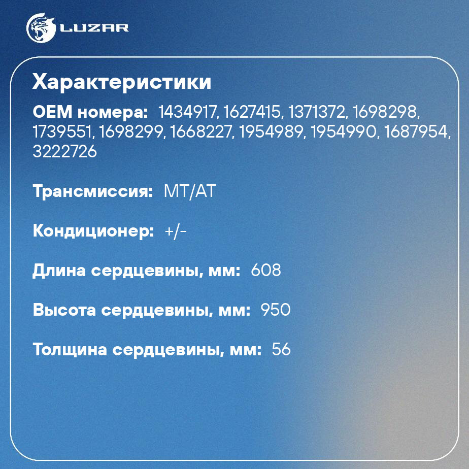Запчасти системы охлаждения LUZAR