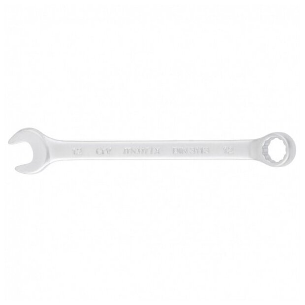 Ключ гаечный комбинированный с открытым и кольцевым зевом предназначен для монтажа (демонтажа) резьбовых соединений. Ключ изготовлен из хромованадиевой стали. Твердость материала рабочей части ключа 45 HRC, требования ГОСТ – 45–51 HRC. Ключ имеет антикоррозионное покрытие из хрома. Профиль кольцевого зева имеет 12 граней, что увеличивает площадь соприкосновения рабочих поверхностей и снижает риск деформации граней крепежа при монтаже. Угол наклона кольцевого зева относительно плоскости ключа в 15 градусов делает монтаж более удобным.