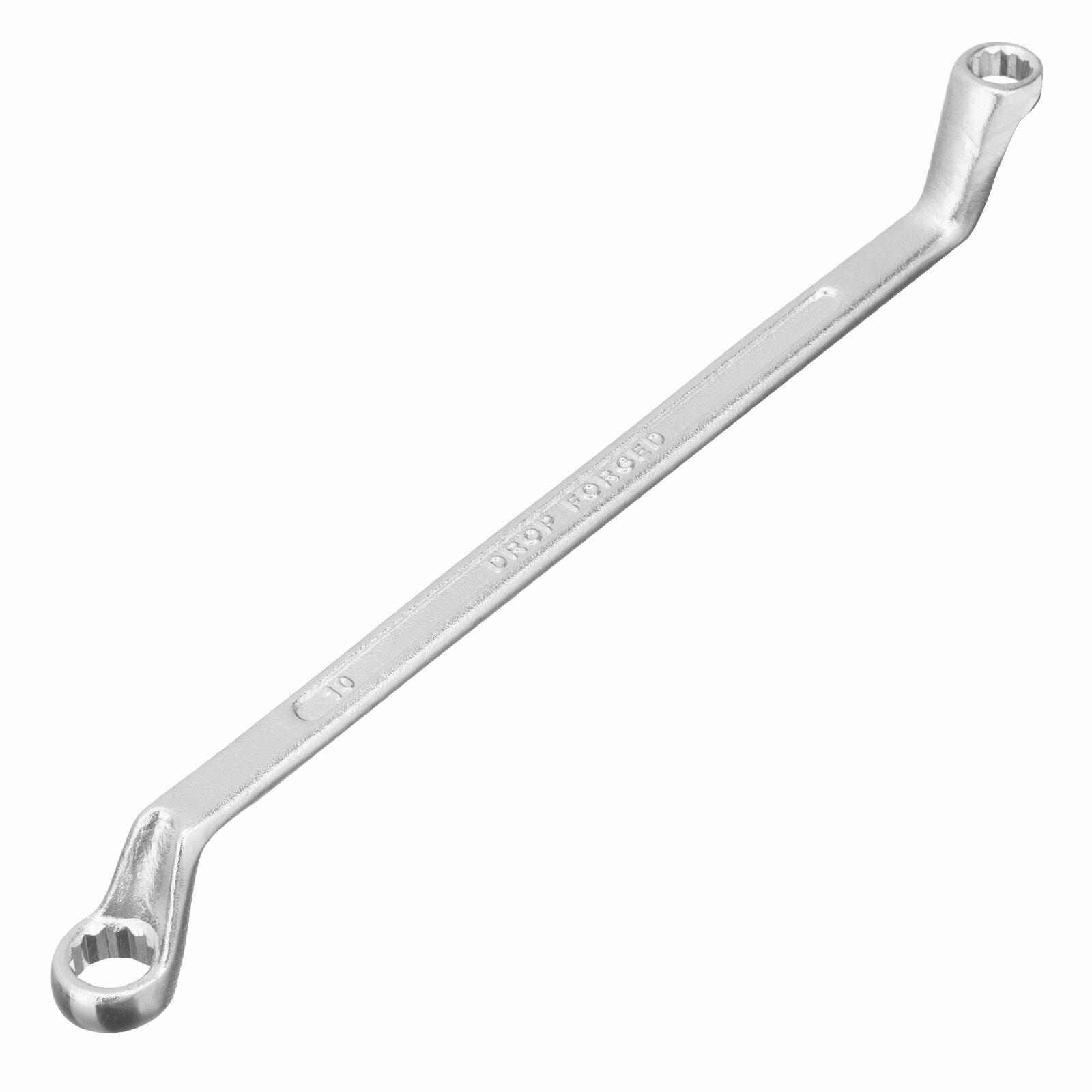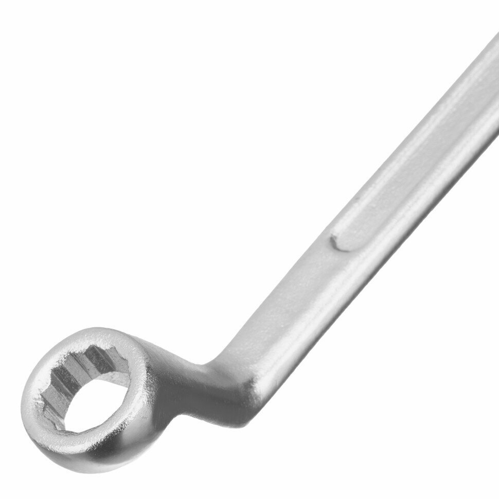 | Прочие особенности и свойства | Ключ гаечный коленчатый Предназначен для монтажа и демонтажа резьбовых соединений., Ключ гаечный коленчатый изготовлен из углеродистой стали., Твердость материала рабочей части ключа 42 HRC, требования ГОСТ – 41–46 HRC., Надежное антикоррозионное покрытие из хрома., Ключ имеет два кольцевых зева разных размеров., Профиль кольцевого зева имеет 12 граней, что увеличивает площадь соприкосновения рабочих поверхностей и снижает риск деформации граней крепежа при монтаже., Накидные рабочие части ключа смещены относительно его рукоятки, что позволяет работать в труднодоступных местах. |