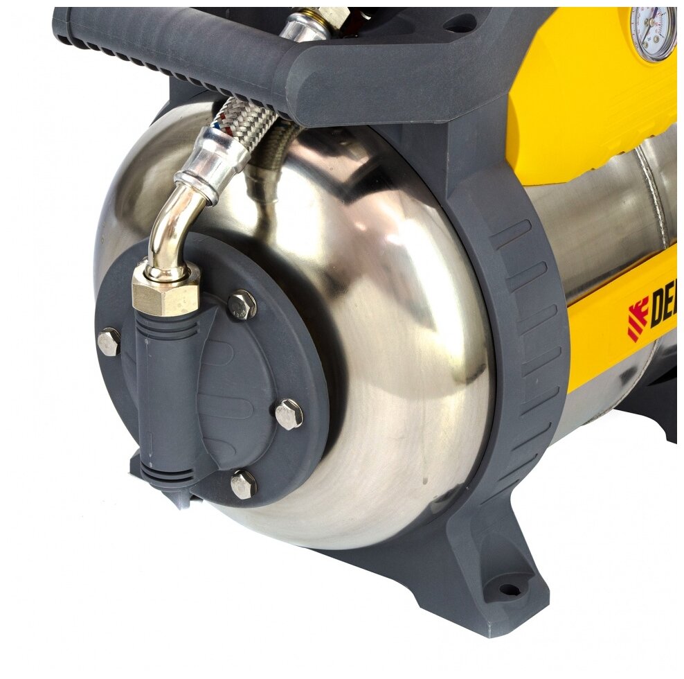 Насосная станция DENZEL (Дензел) обеспечивает поду воды в автономном режиме с автоматической поддержкой давления. Модель используется в водопроводных системах, способна поднимать воду с глубины до 8 метров. Корпус прибора сделан из нержавеющей стали, а крыльчатки - из многокомпонентного пластика. Гидроаккумулятор оснащен резервуаром со сменной мембраной и имеет пневмоклапан.