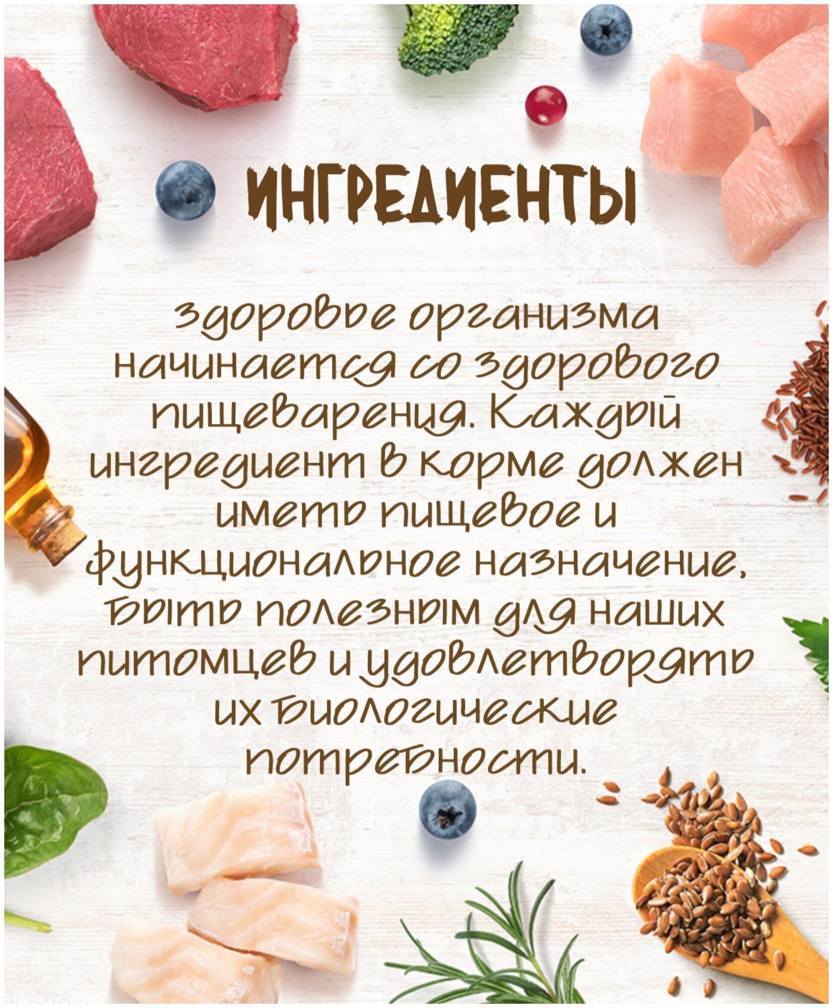 - 65% мяса в составе корма