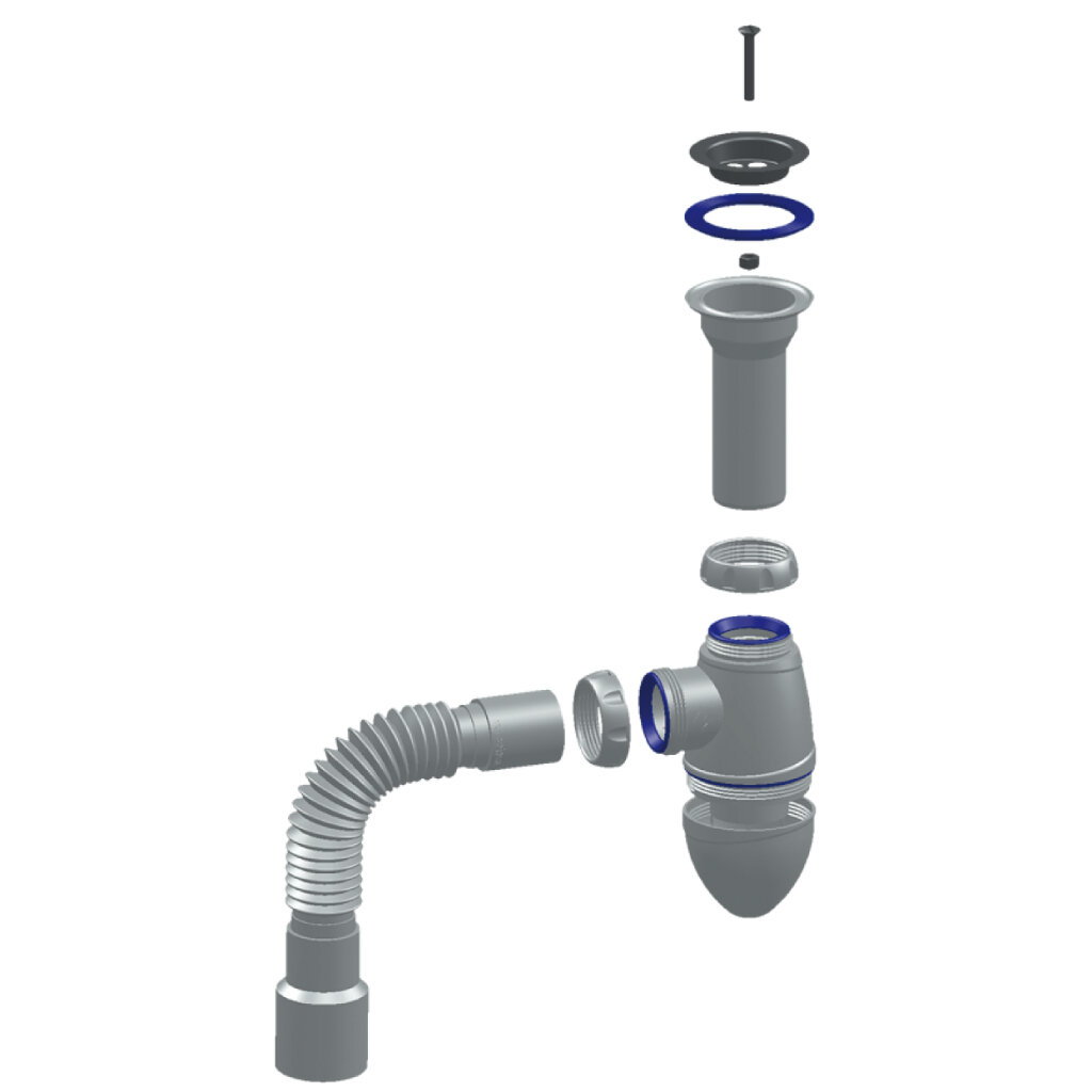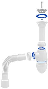 Система Quick Fit обеспечивает сверхбыструю сборку и установку, а также долговечное использование. Уплотнители уже интегрированы в корпус, что исключает неправильное соединение частей сифона и потерю уплотнителей.