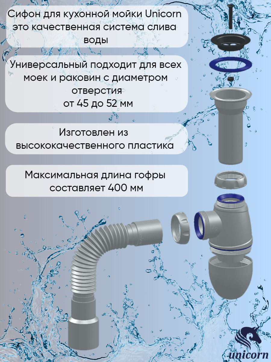 Сервис сравнения цен СкидкаГИД предлагает сравнить цены на товар «Литой сифон для кухни Unicorn B120»