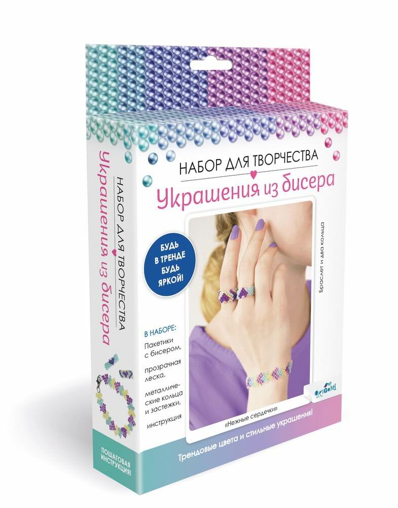 Набор для создания украшений из бисера Нежные сердечки ОРИГАМИ