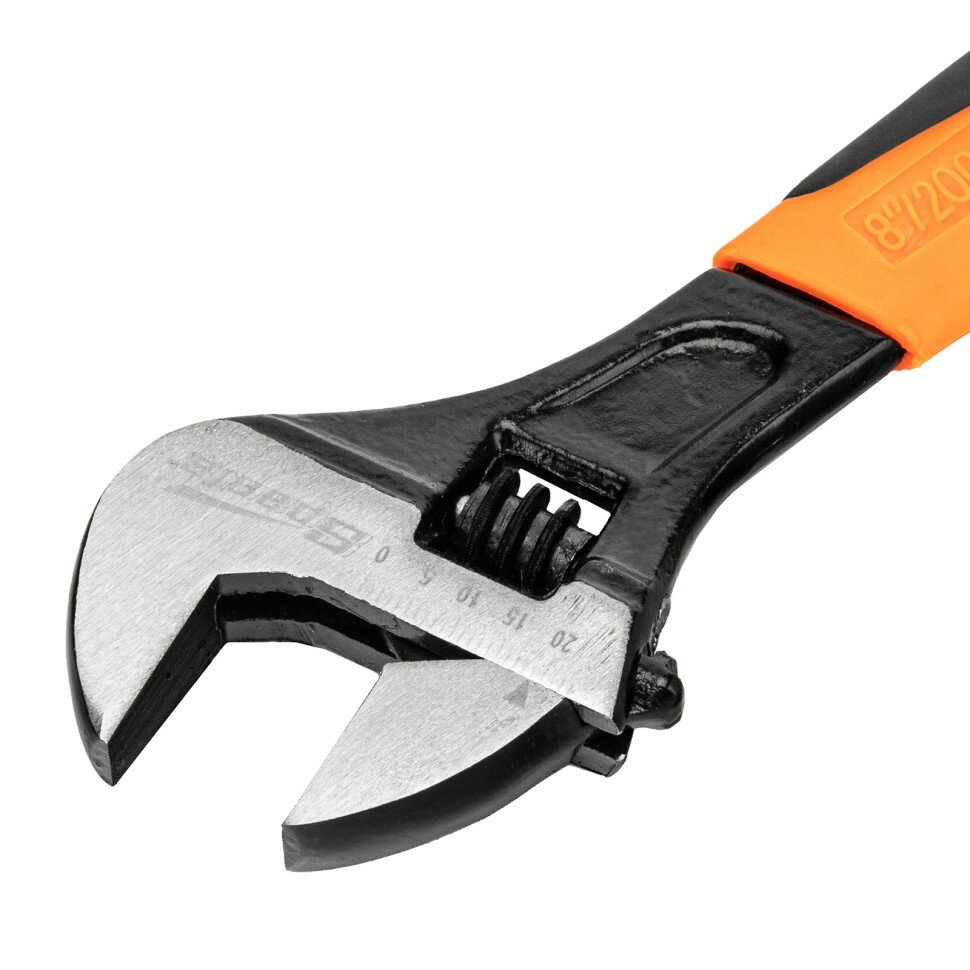 Разводной ключ Sparta длиной 200 мм, с двухкомпонентной рукояткой, подходит для работы с любыми крепежными деталями диаметром до 20 мм, в том числе нестандартных размеров благодаря регулировке размера зева. Инструмент пригодится для бытового применения и всегда придет на выручку, если нет нужного по размеру гаечного ключа.