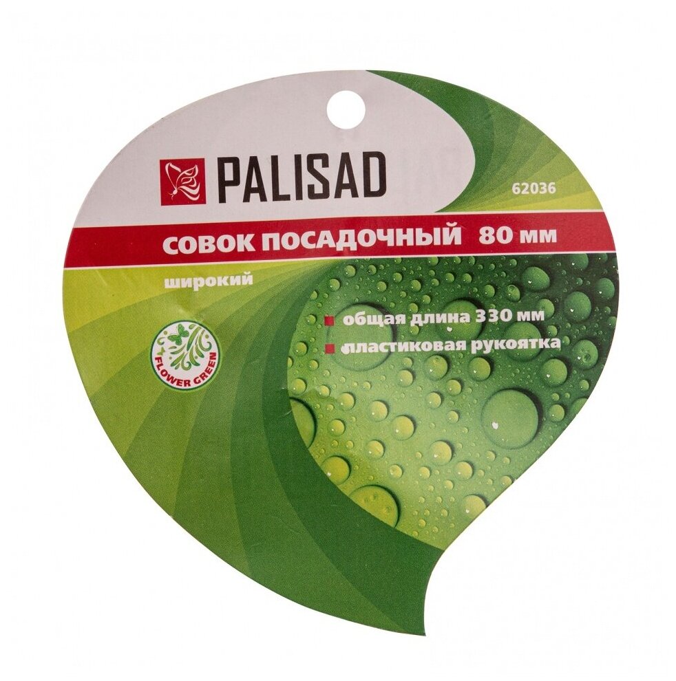 Широкий посадочный совок Palisad FLOWER GREEN размером 80 х 330 мм, стальной, с пластиковой рукояткой, поможет поддерживать порядок на участке. Оптимален для таких задач, как посадка и осуществлять посадку растений, рассады, пересадкау цветов.