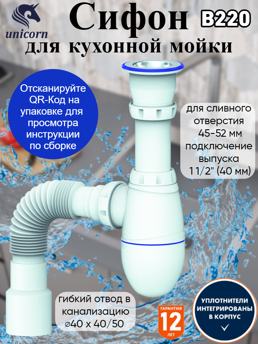 Сервис сравнения цен СкидкаГИД предлагает сравнить цены на товар «Сифон для кухни Unicorn B220»