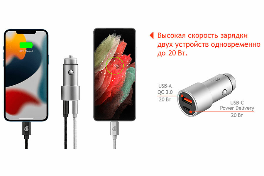 Модель: Ride USB-A + USB-C, PD, 20Вт серебристый