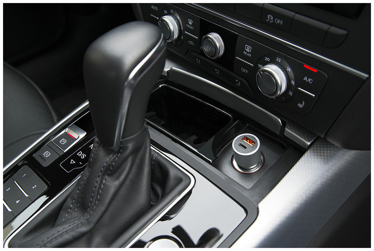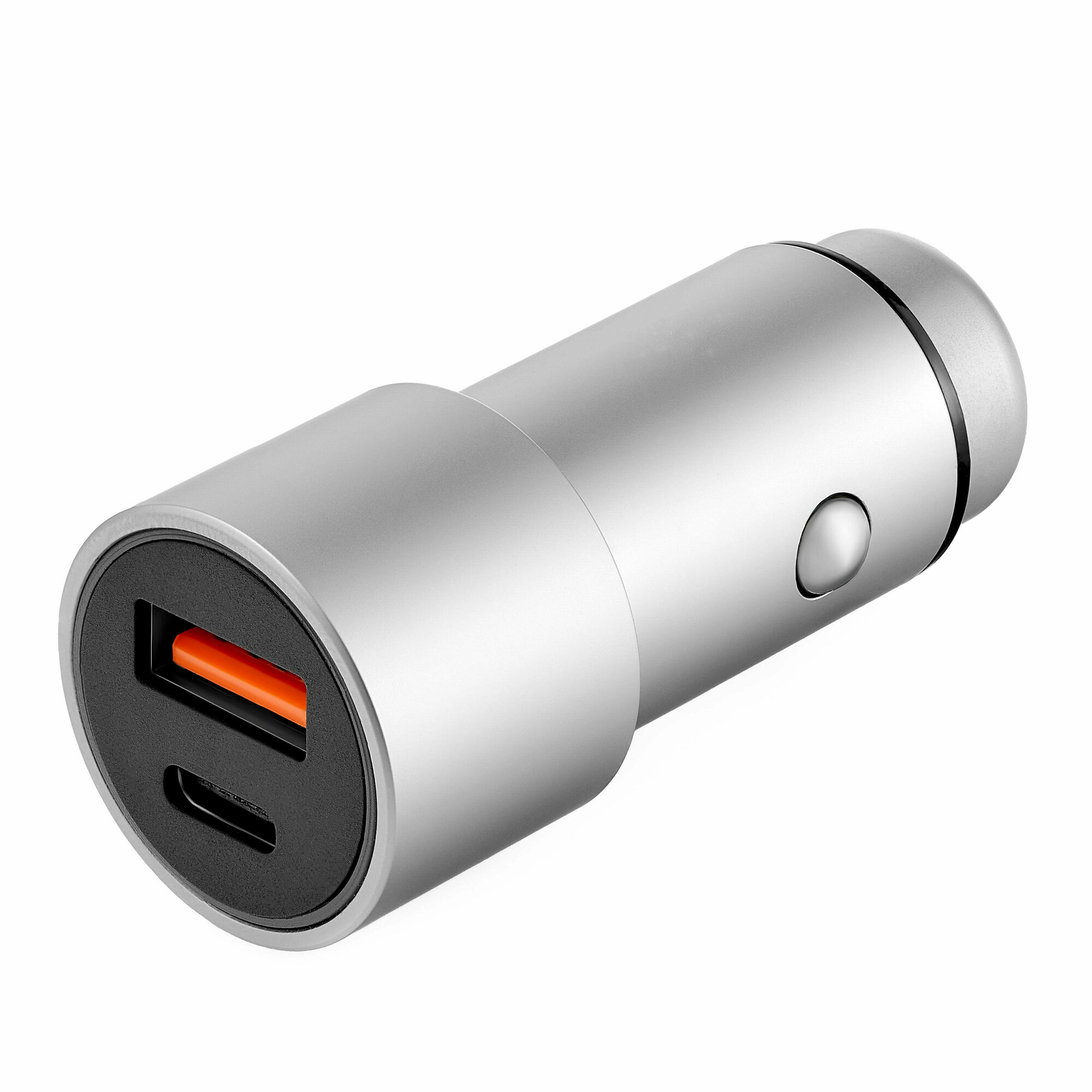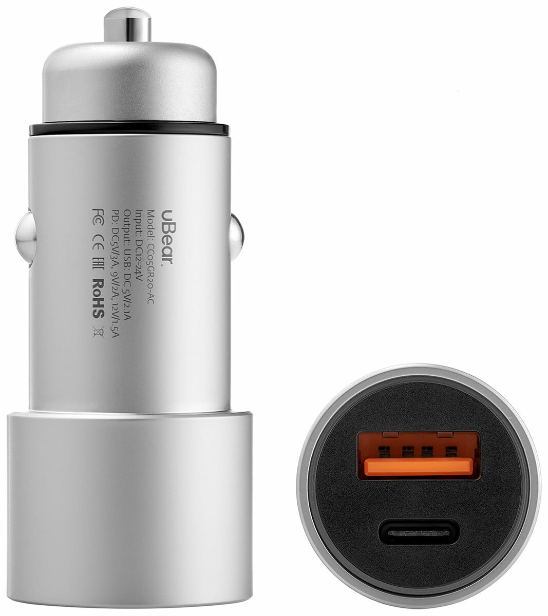 Автомобильное зарядное устройство uBear Ride USB-A + USB-C, PD, 20Вт серебристый