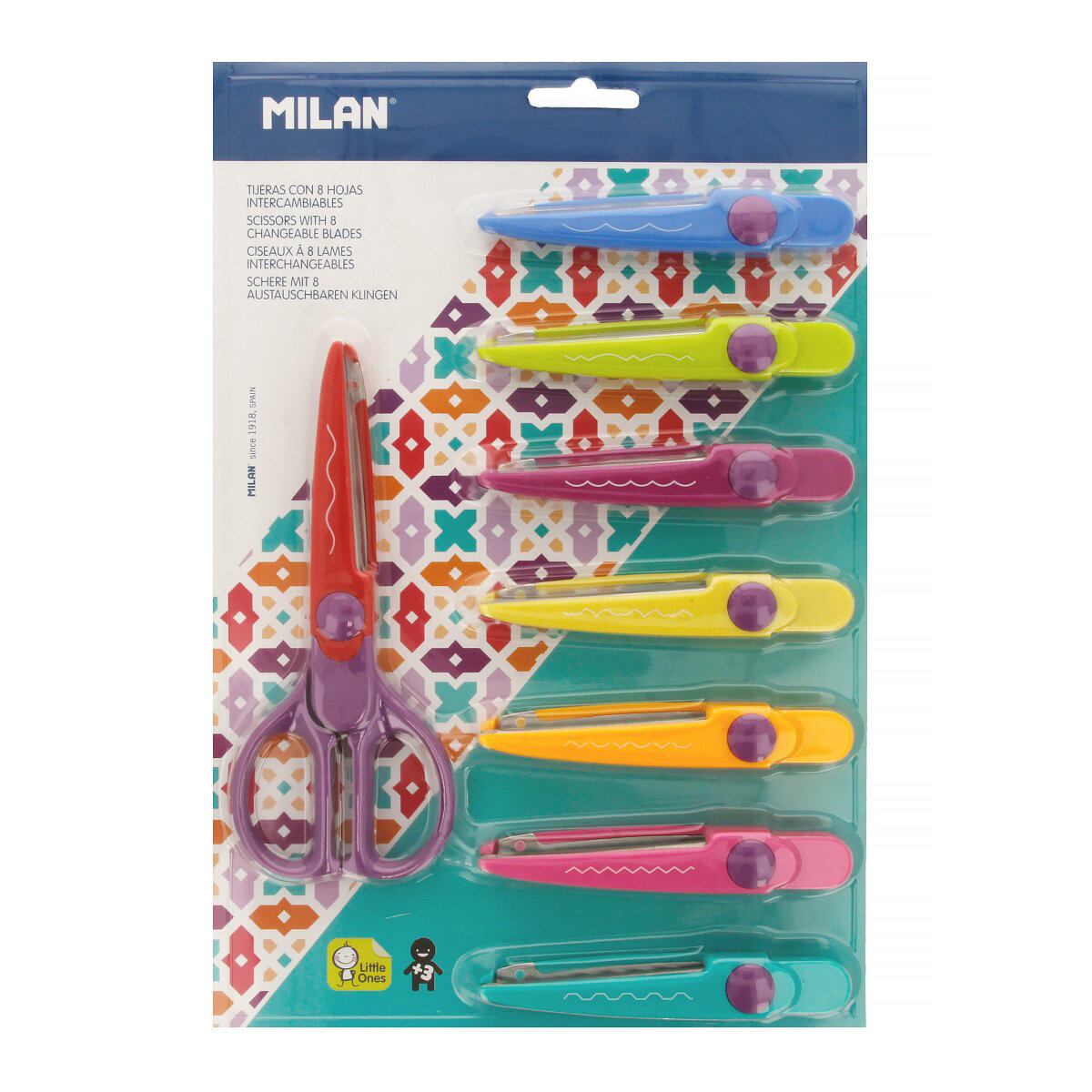 Ножницы детские фигурные MILAN "ZIGZAG" 16 см с 7 сменными насадками-лезвиями европодвес (14930908)