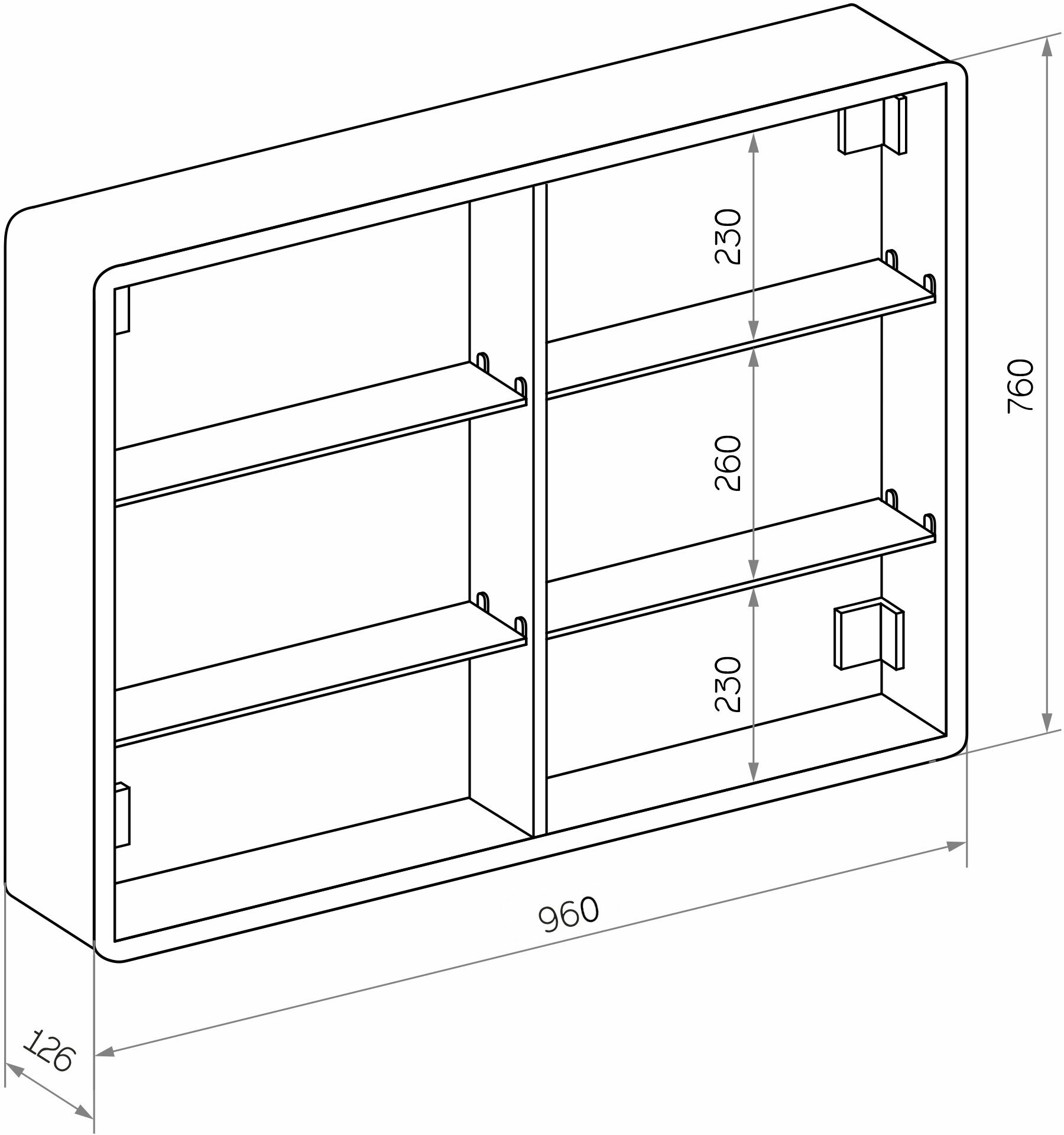 | ВКоробке | Зеркало-шкаф - 1 шт. Комплект подсветки - 4 шт. Вкладная полка - 4 шт. Комплект доводчиков - 1 шт. Инструкция - 1 шт. |