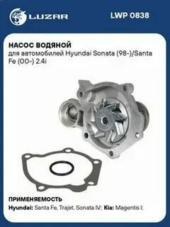 Насос водяной для автомобилей Hyundai Sonata (98-)/Santa Fe (00-) 2.4i LUZAR (LWP 0838)