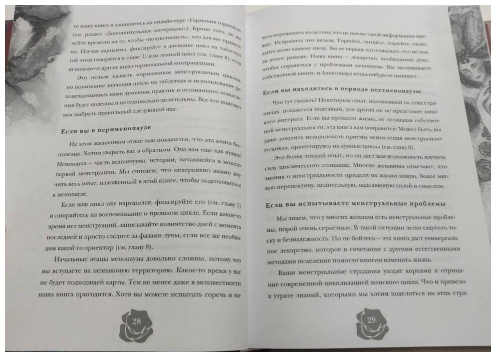 Ощущение – будто эта книга – мамины объятия. Она дарит тепло, комфорт и спокойствие, учит воспринимать свой организм по-другому. Вы бы подумали, что после принятие менструации, как части вас, ваша жизнь начнет меняться? Я нет. Зато теперь я овладела искусством прекрасного и остаюсь в гармонии с собой даже в эти дни.
