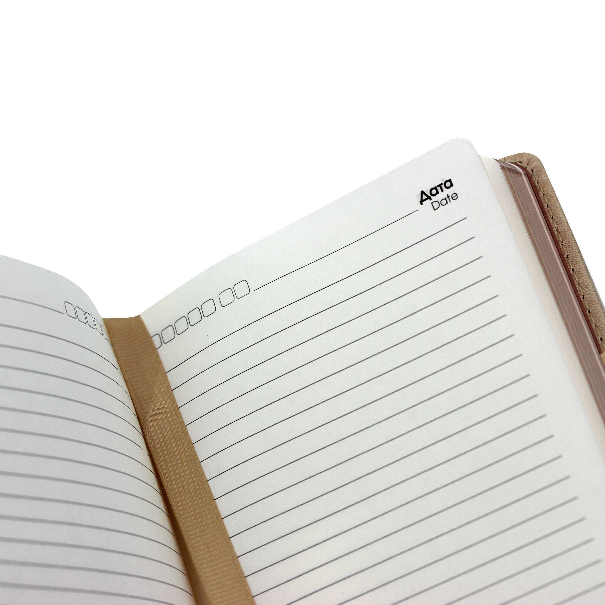 Ежедневник выполнен в красивом переплете средней жесткости с фольгированными вставками на внешней стороне обложки и по краям листов. По размеру в закрытом виде примерно 10 см. в ширину и около 15 см. в высоту. Страницы светло-кремового цвета с закладкой-ленточкой. Помимо основных страниц с датой есть дополнительные: для личной информации, календари с 2022 по 2025 года, планирование проектов и контакты. Пришел в прозрачной индивидуальной упаковке.