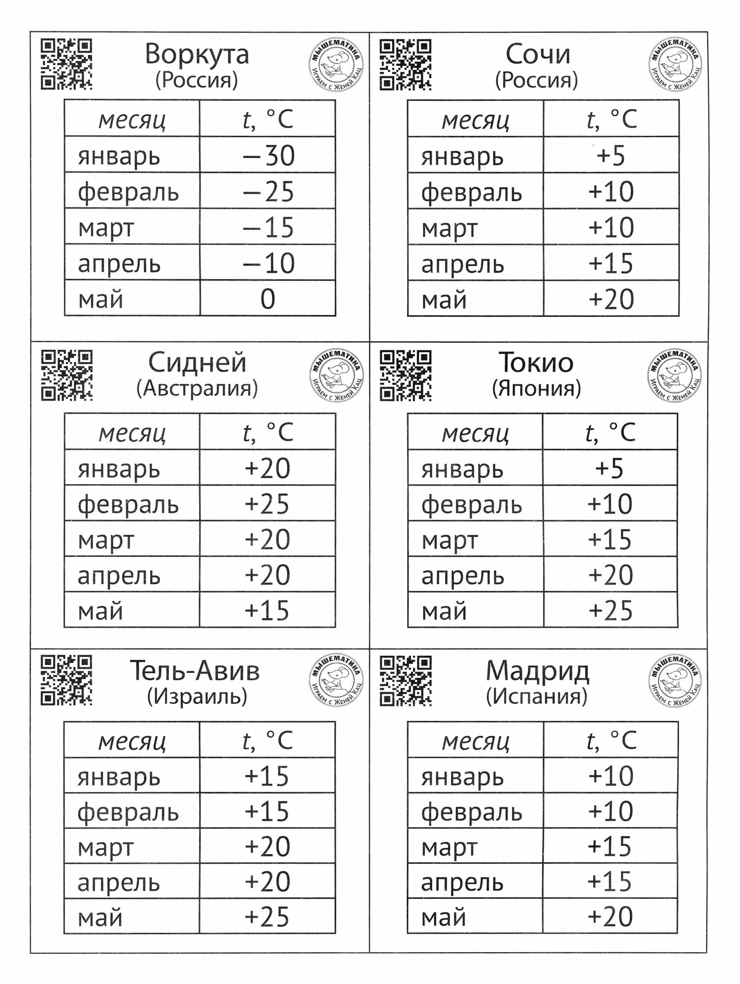 В чём отличие от других заданий по математике? Все задания предполагают личную включённость учащихся. Кто-то ищет свой город, кто-то ищет город, в котором живут его друзья, бабушки или дедушки, или город, куда он ездил в гости. Учитель может заранее спросить у учащихся, кто в каких городах был летом, откуда родом родители или бабушки-дедушки, и добавить 4–8 городов, описав для них погоду в виде таблицы и в виде графика.