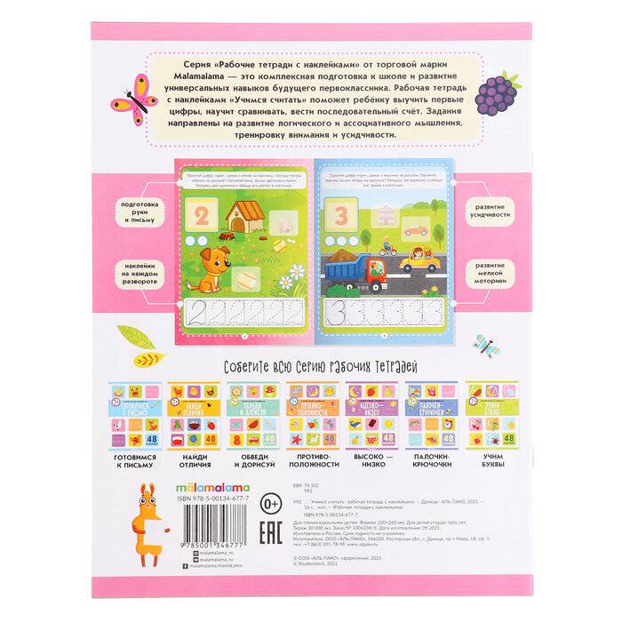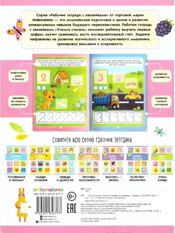 Учимся считать Рабочая тетрадь с наклейками 48 наклеек (Белых Виктория Алексеевна); Malamalama, 2021