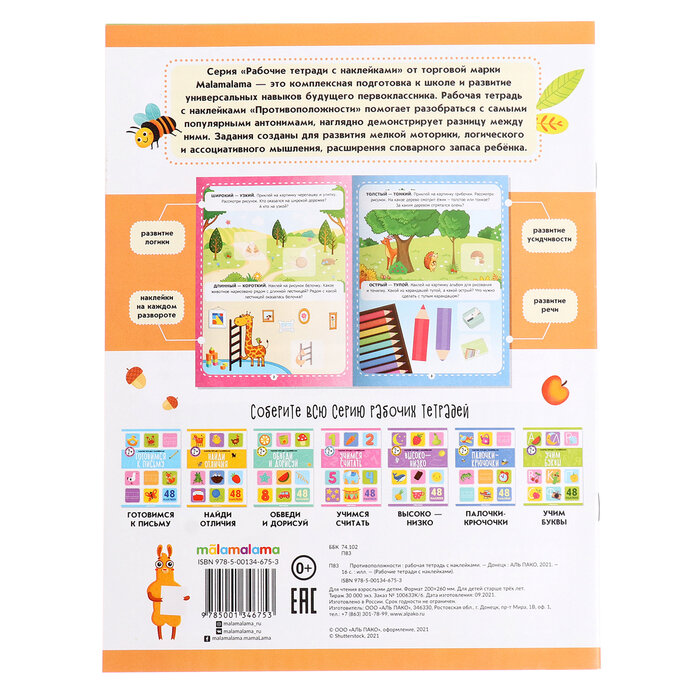 Противоположности Рабочая тетрадь с наклейками 48 наклеек (Нет автора); Malamalama, 2021