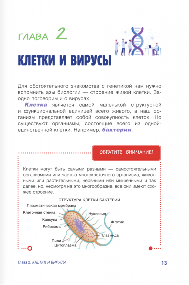 Во-вторых, автор скачет от темы к теме, отсутствует логическая структура. Первая глава про ДНК, потом про бактерии и вирусы, а потом гены. Логично было бы начать с чего-то крупного и постепенно переходить на более низкие уровни.