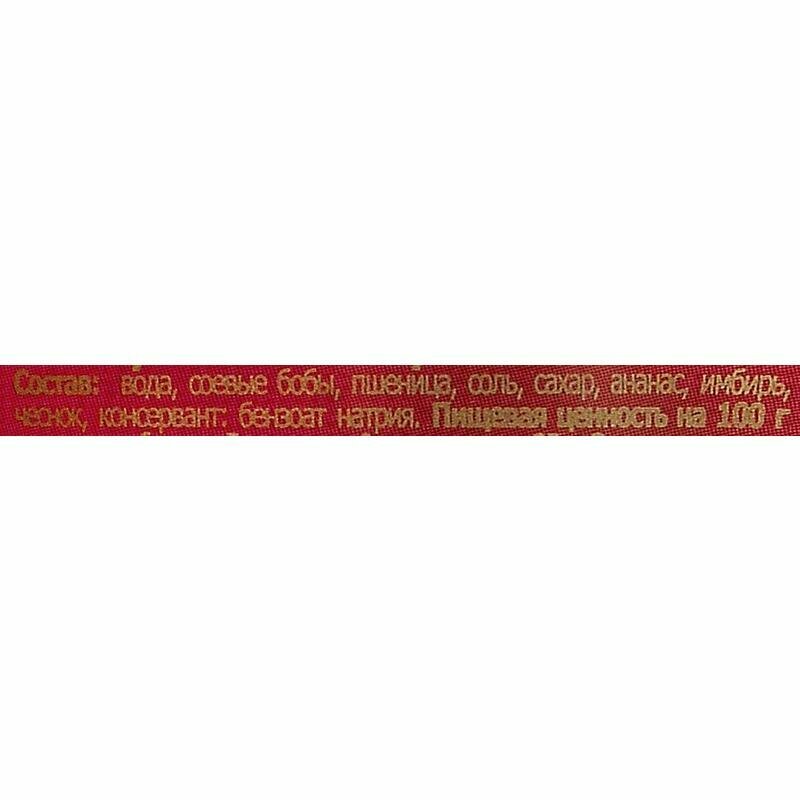 | Состав | вода, соевые бобы, пшеница, соль, сахар, ананасы, имбирь, чеснок, консервант |