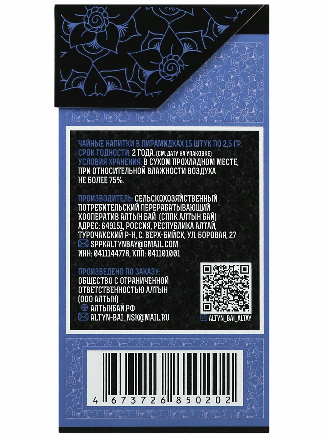 | Вид | Чай пакетированный |