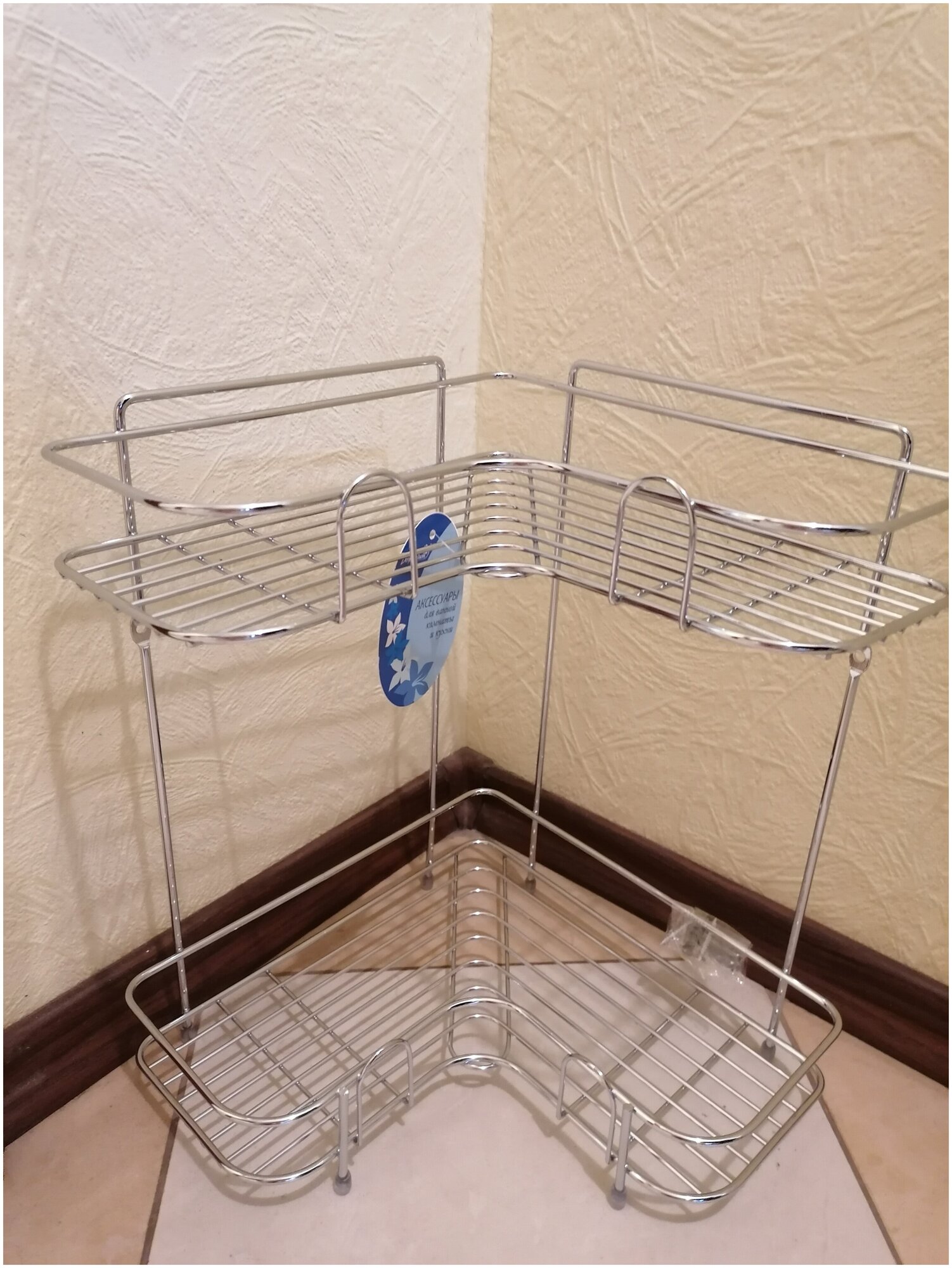 Полка настенная 2-ярусная - удобное функциональное решение, идеальное для хранения и организации пространства. Материал изделия - сталь. Угловая полка для ванной комнаты надежно защищена от ржавчины и коррозии. На такой полке с несколькими ярусами поместится все необходимое. Полка имеет в комплекте надежные крепления - дюбели, благодаря которым она крепко и безопасно крепится. Размеры 27х27х35 см.